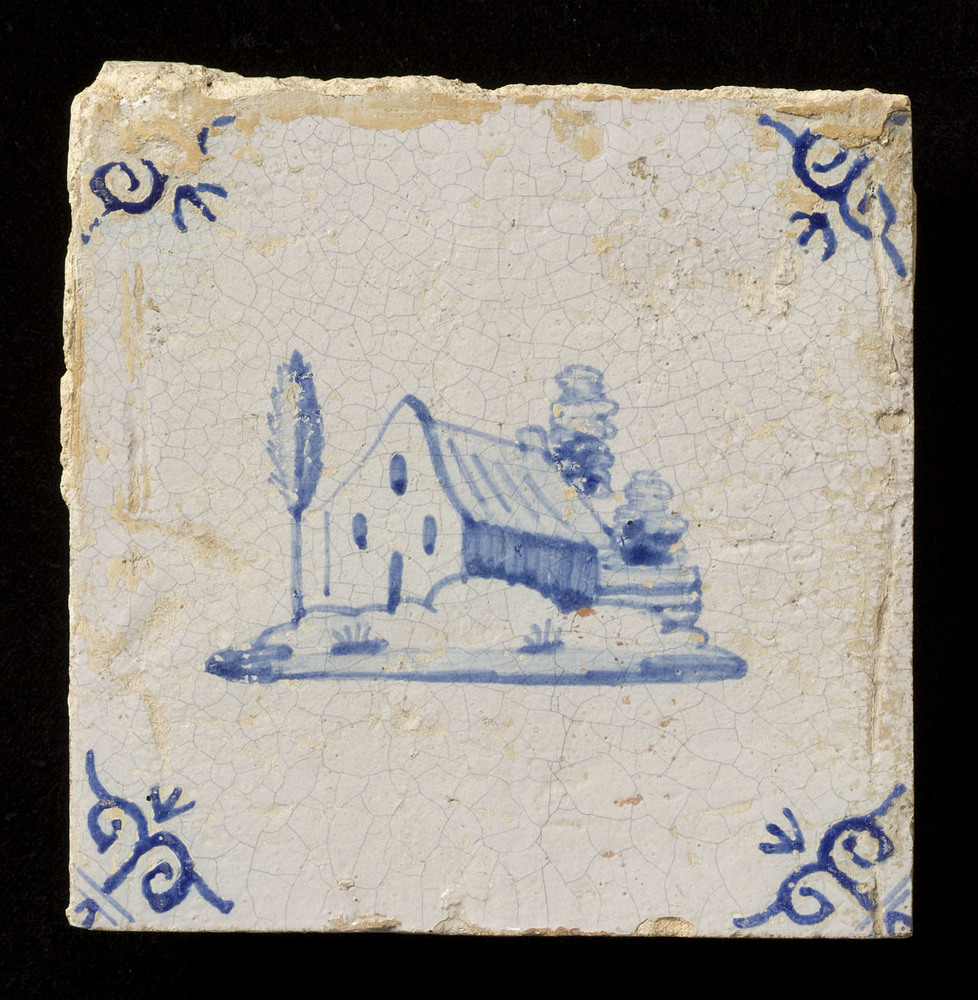 tegel van aardewerk met tinglazuur, voorstellende: o...