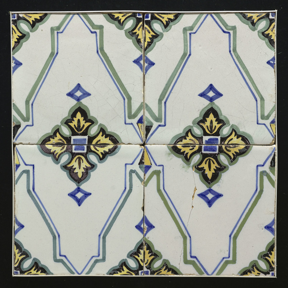Tegelveld van keramiek, tinglazuur, voorstellende de...