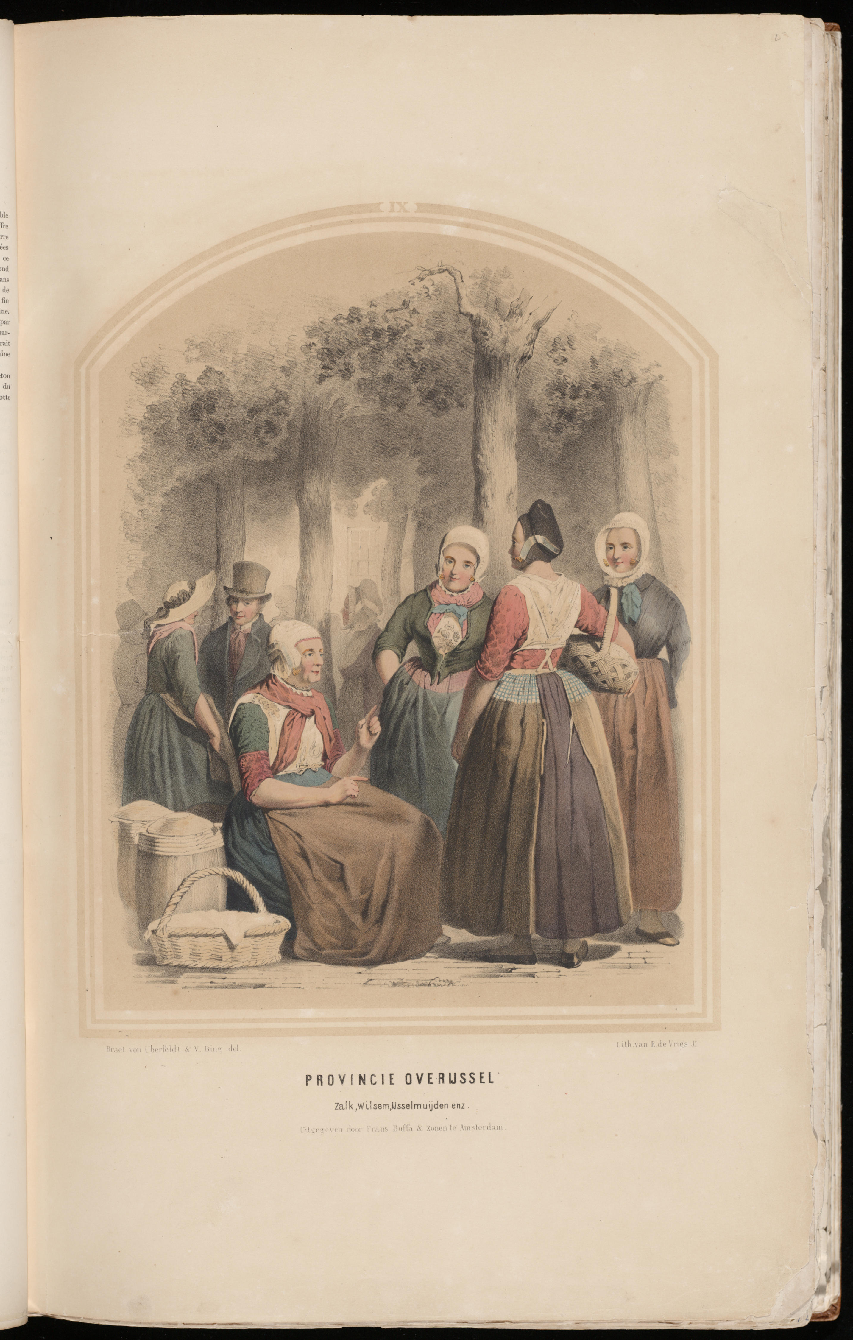 Diverse personen in de dracht van Arnemuiden (lithog...