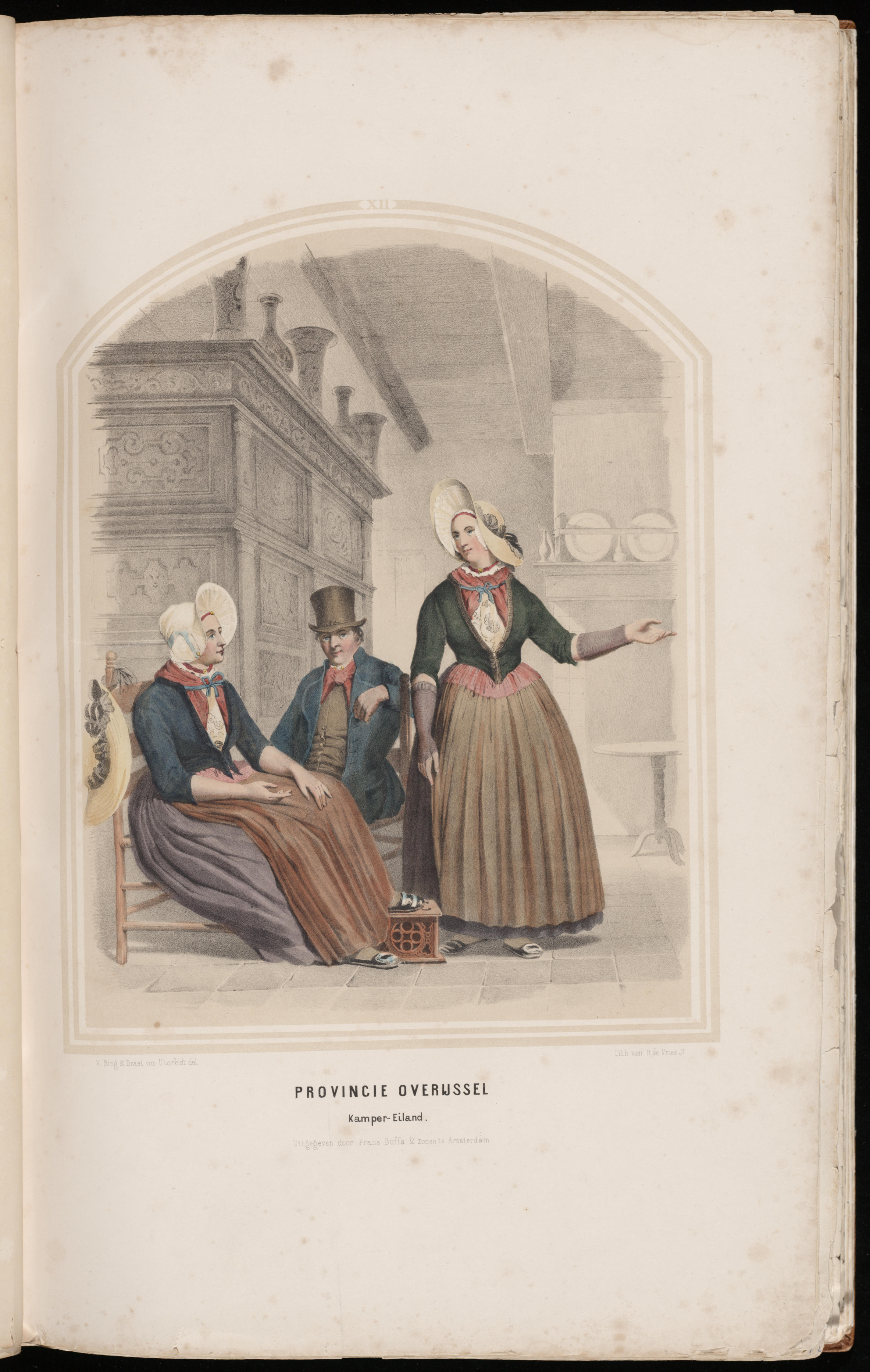 Man en vrouw in Huizer dracht, 1854 (lithografie (pr...