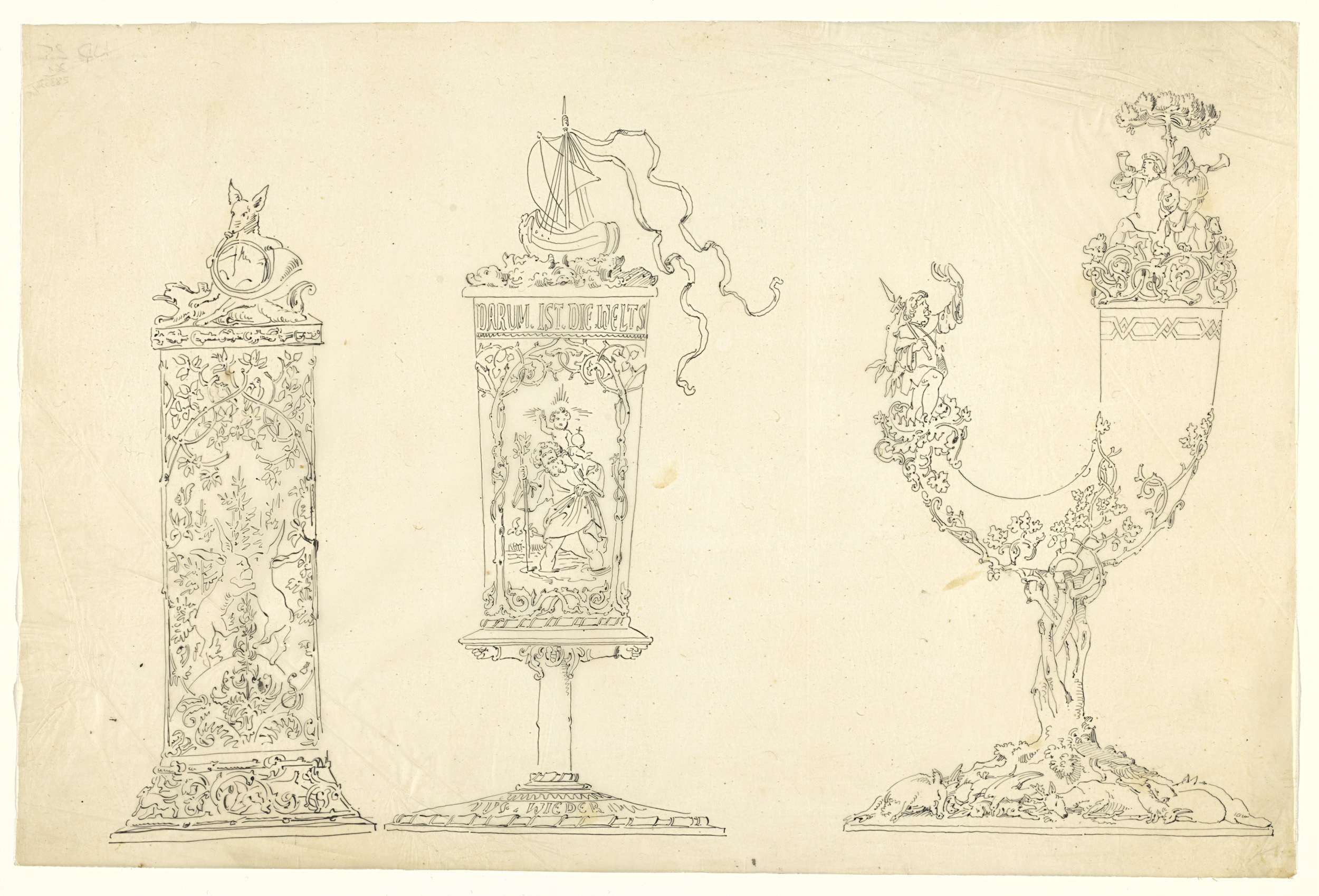Drinkhoorn met een stam in de vorm van een dragende ...
