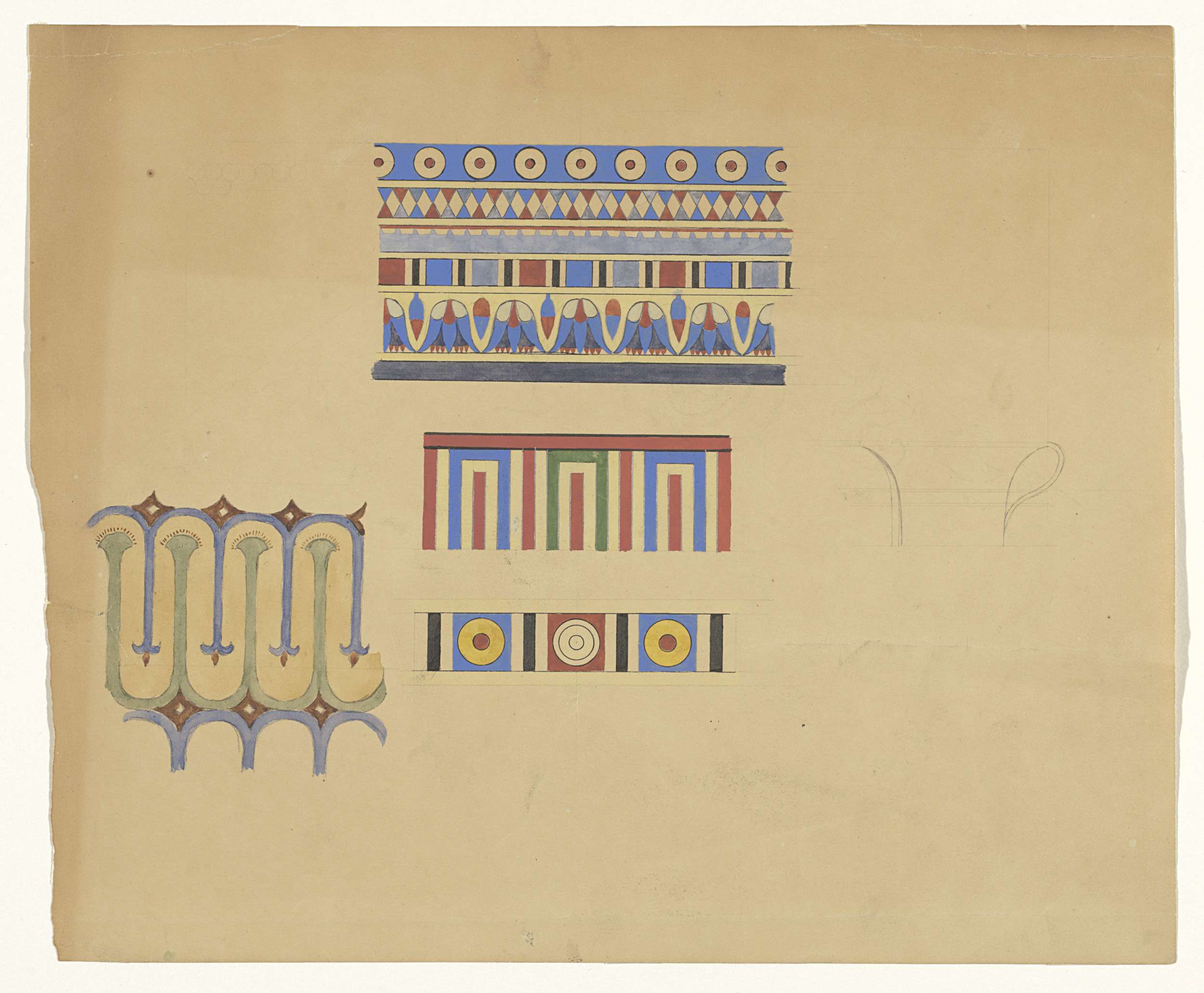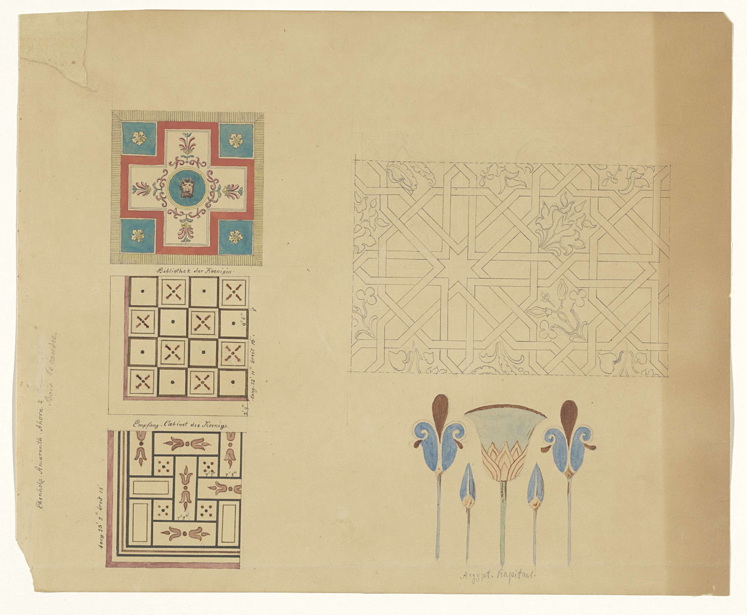 Tapijt (?), vloeren en Egyptische motieven