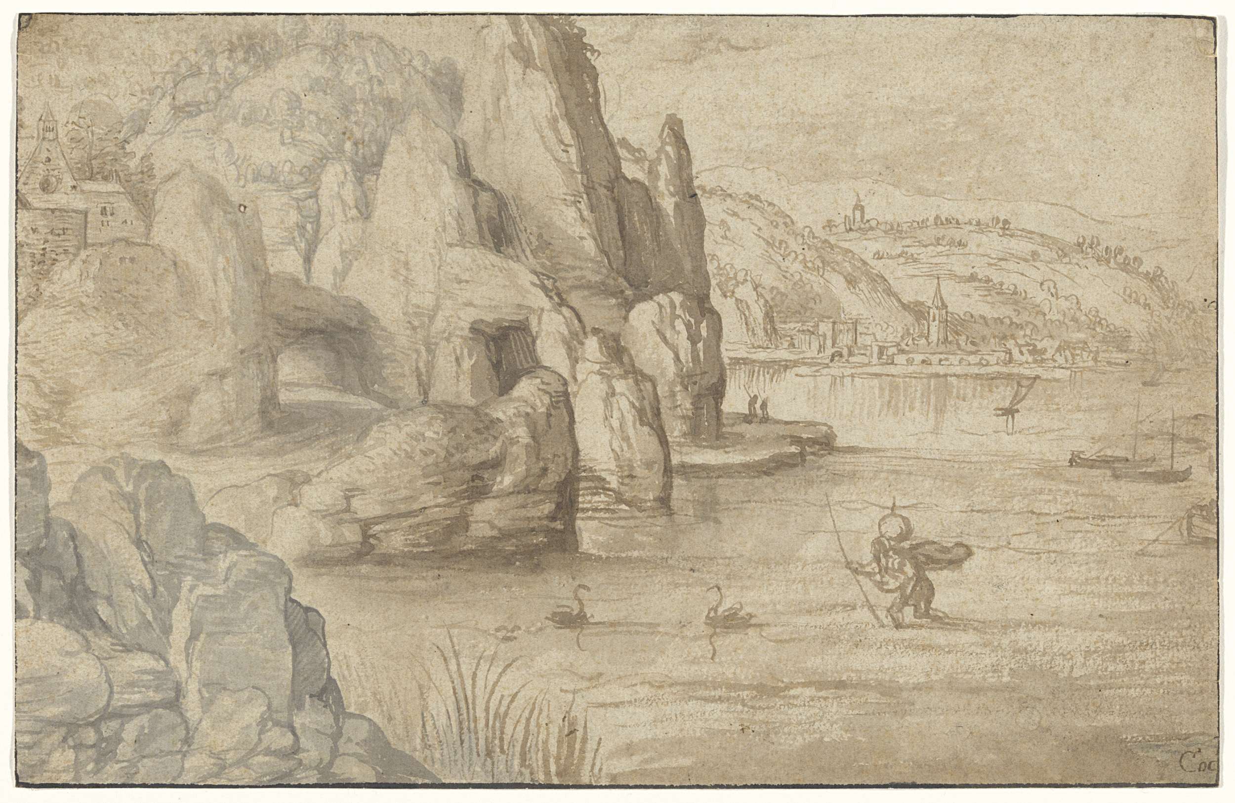 Ontwerp voor een door een zwaan bekroond oor van een...