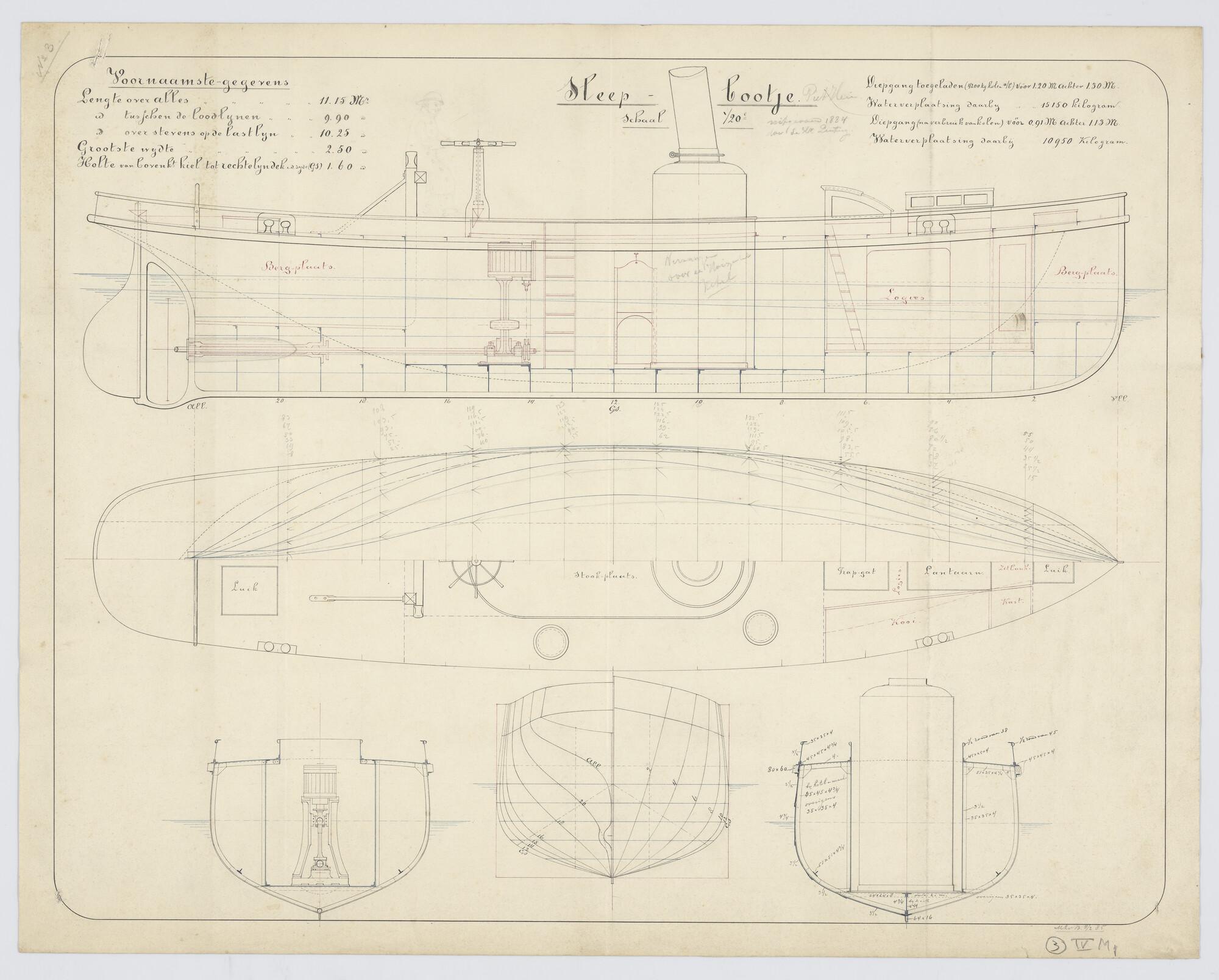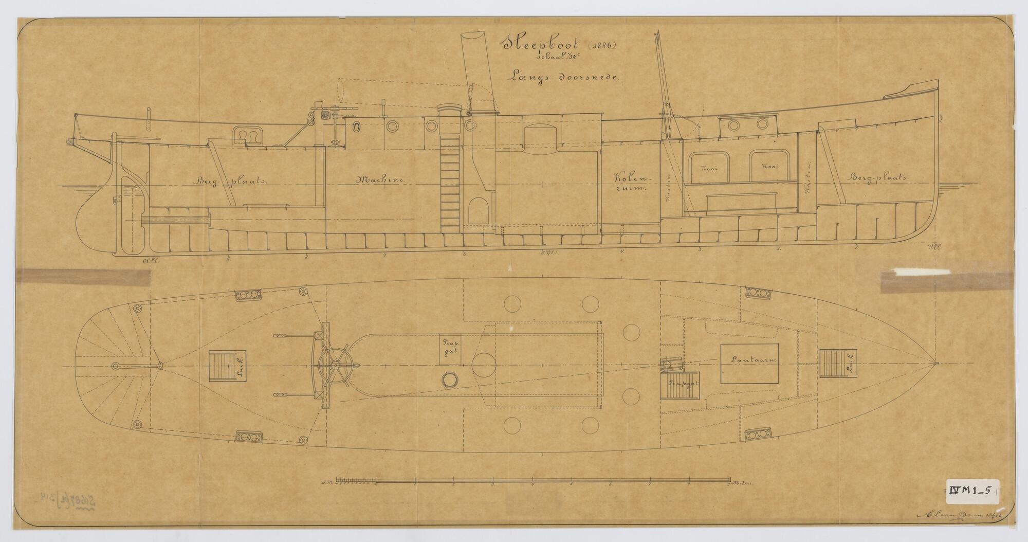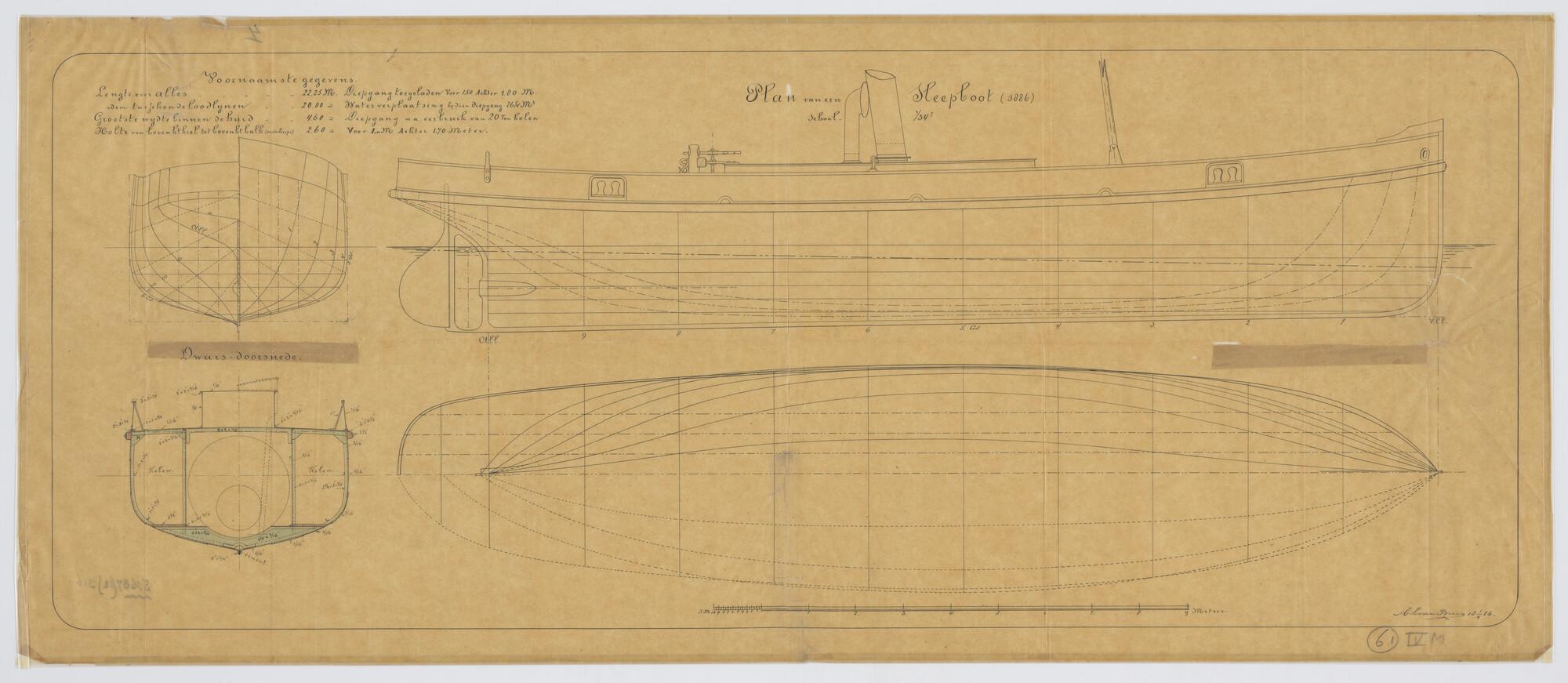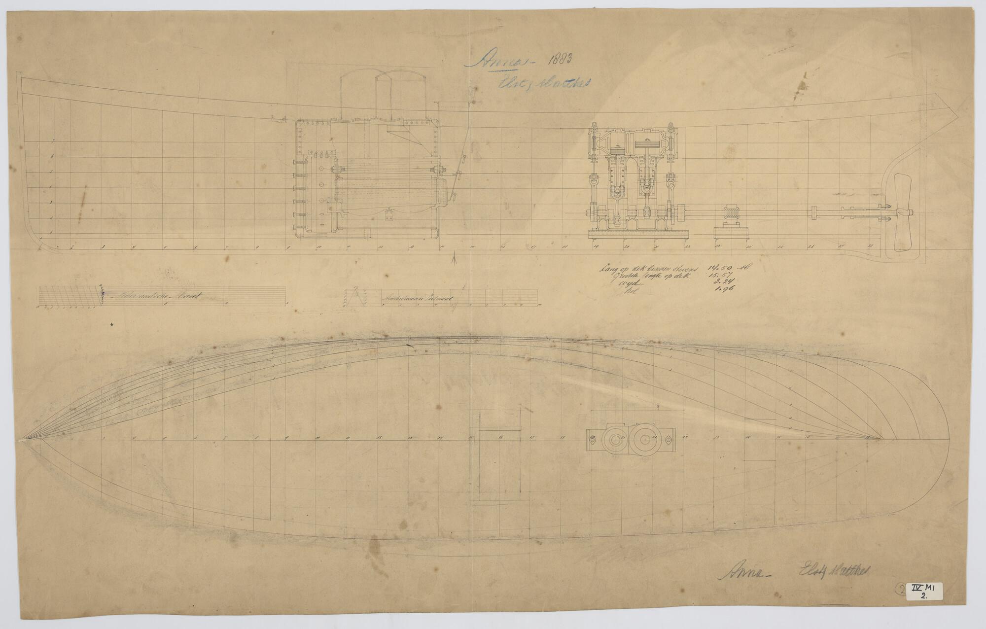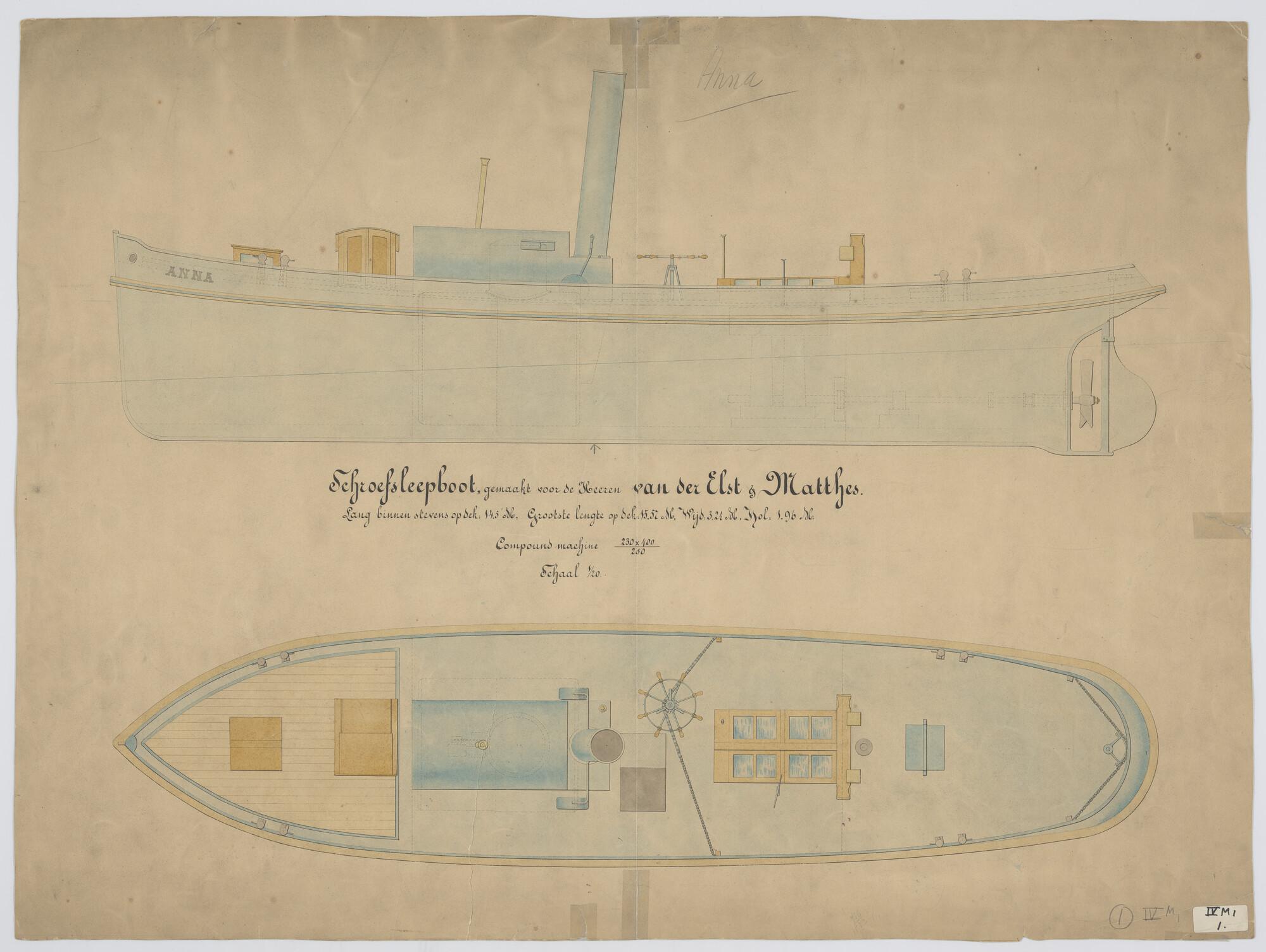 Zijaanzicht en bovenaanzicht van de Sleepboot 'Anna'...