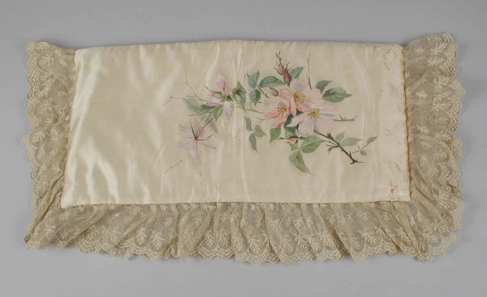 Lichtgroene caraco met geschilderde bloem- en bladmo...