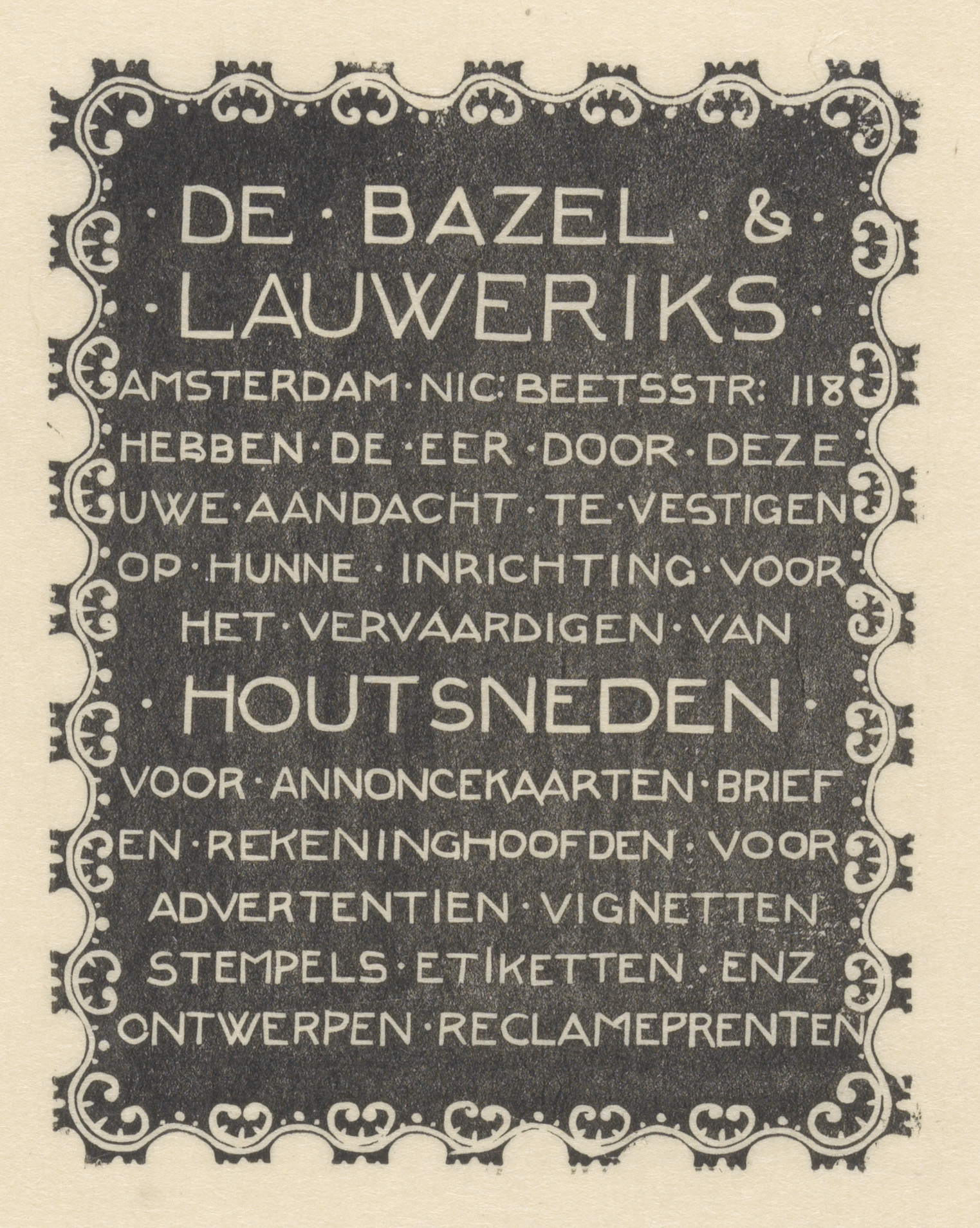 Advertentie van Karel de Bazel en Mathieu Lauweriks