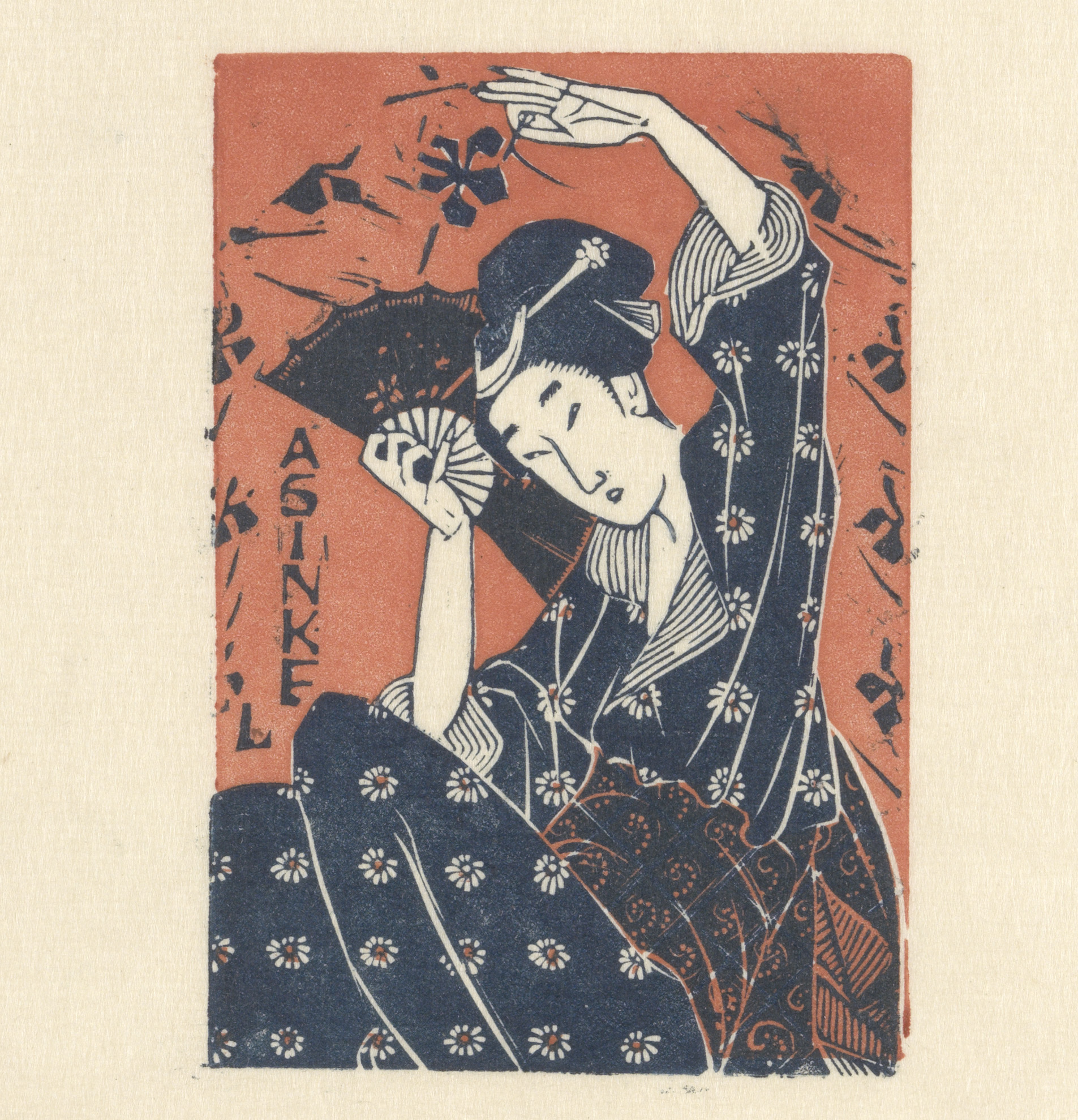 Reclamekaart van A. Sinkel met Japanse vrouw
