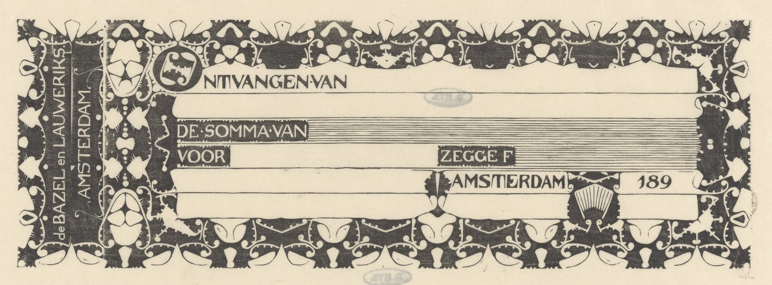 Kwitantie van Karel de Bazel en Mathieu Lauweriks