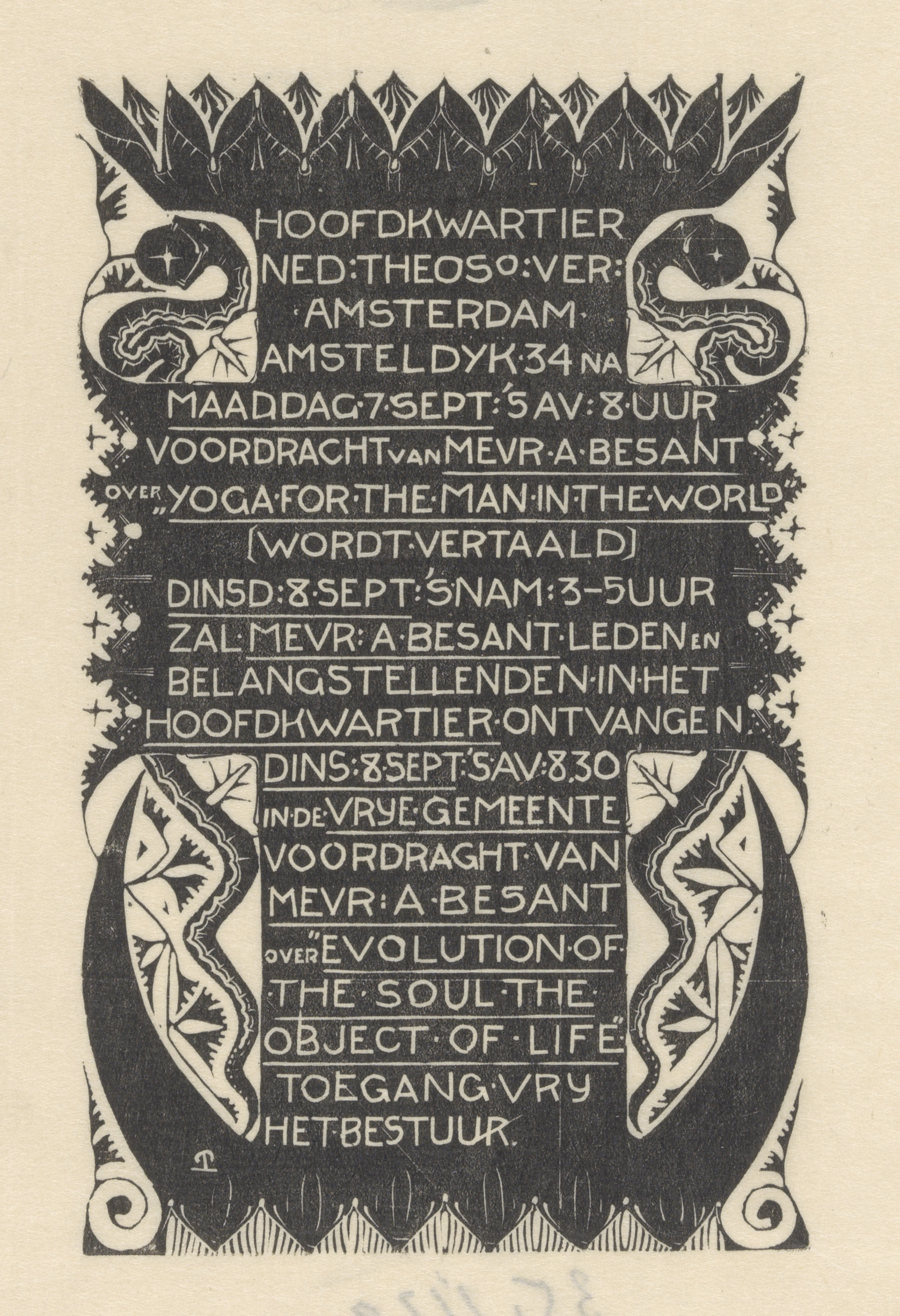 Aankondiging lezingen van A. Besant