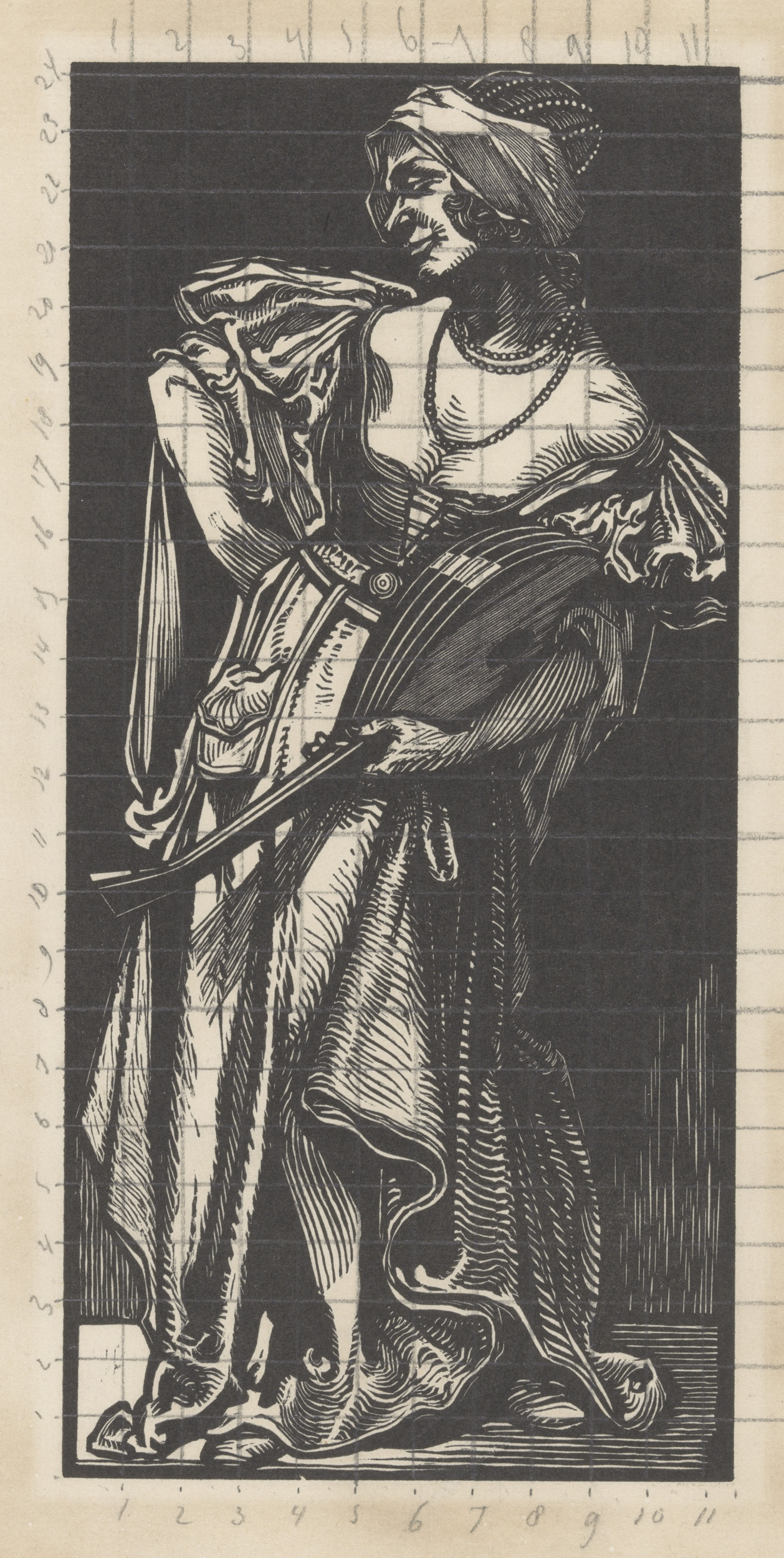 Figuur met regalia en steekwapens