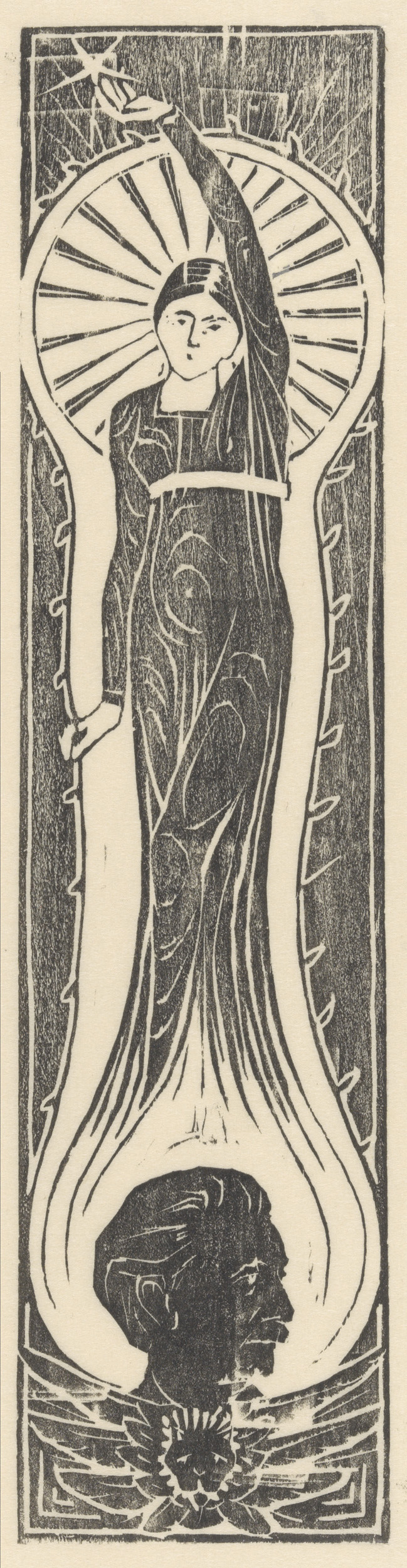 Allegorische figuur met portret van Multatuli