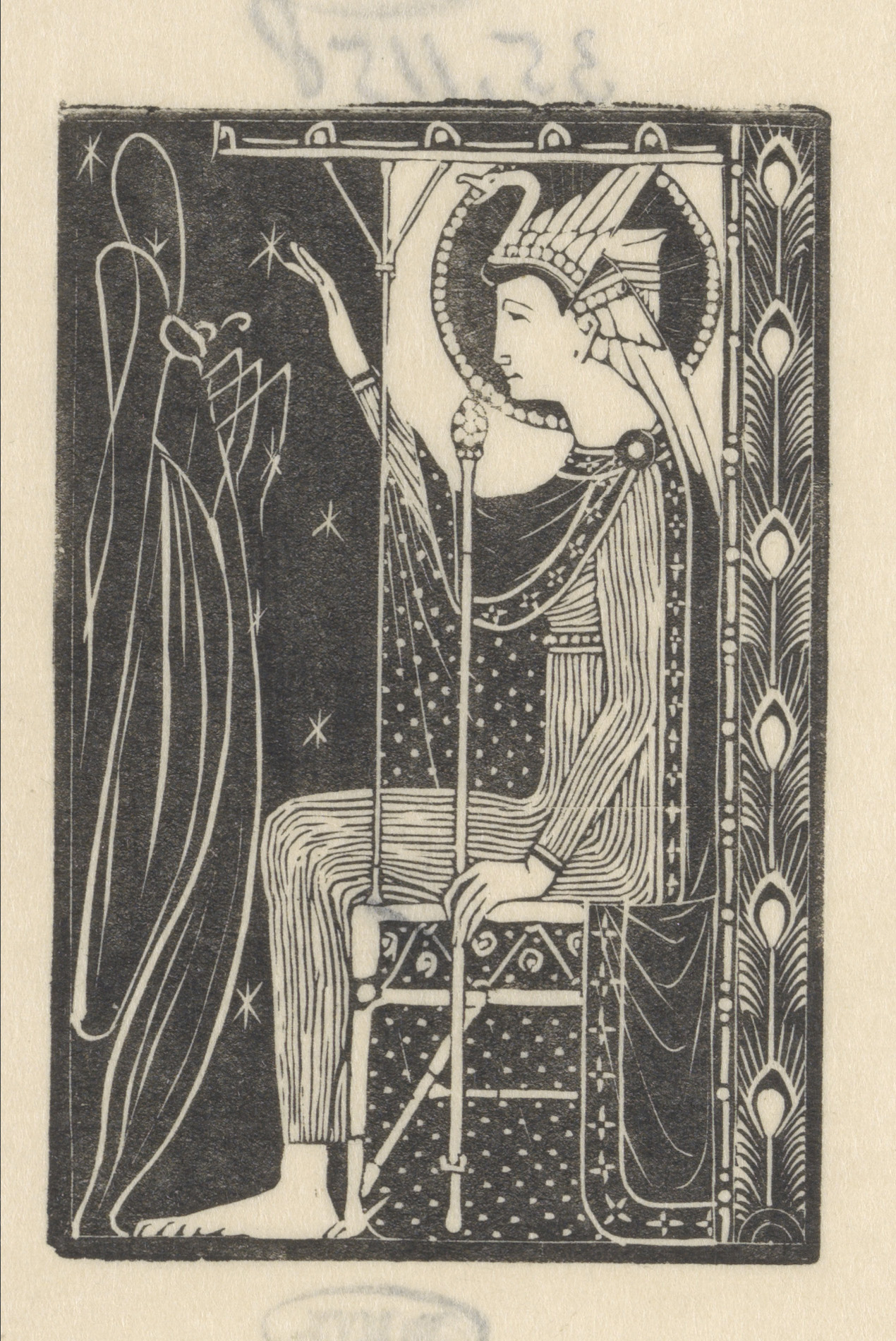 Figuur op troon en sprinkhaan
