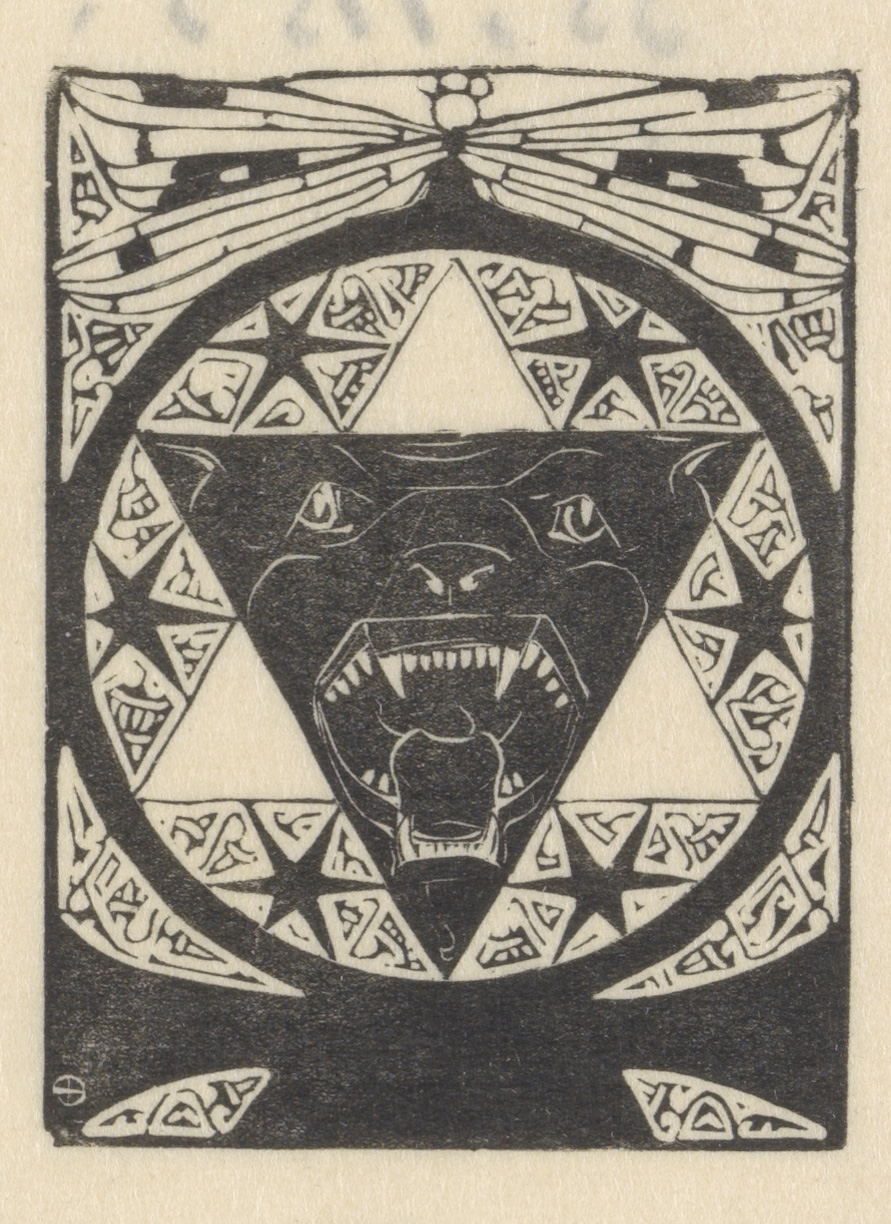 Theosofisch embleem met brullende hondenkop