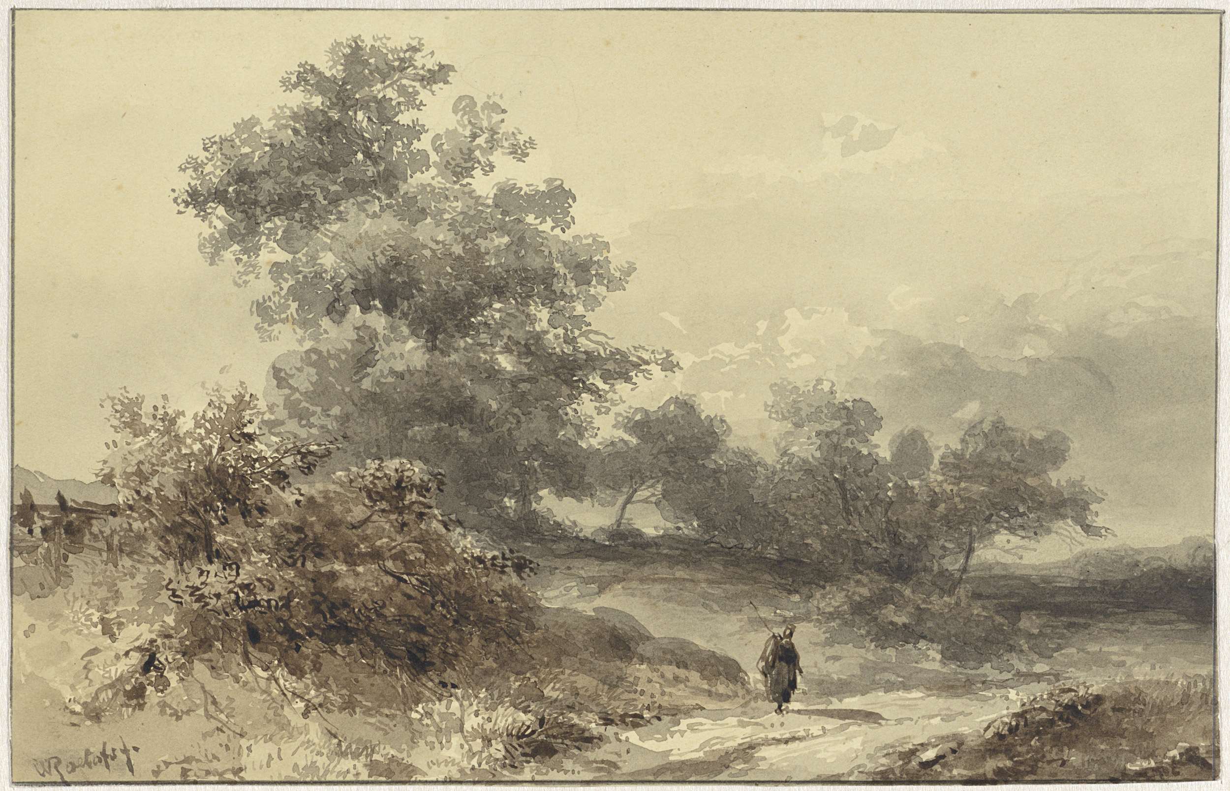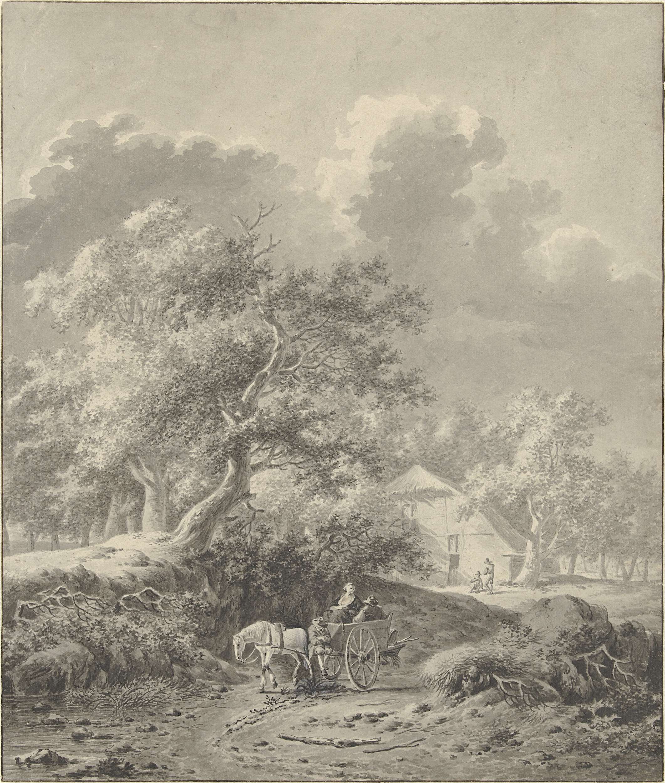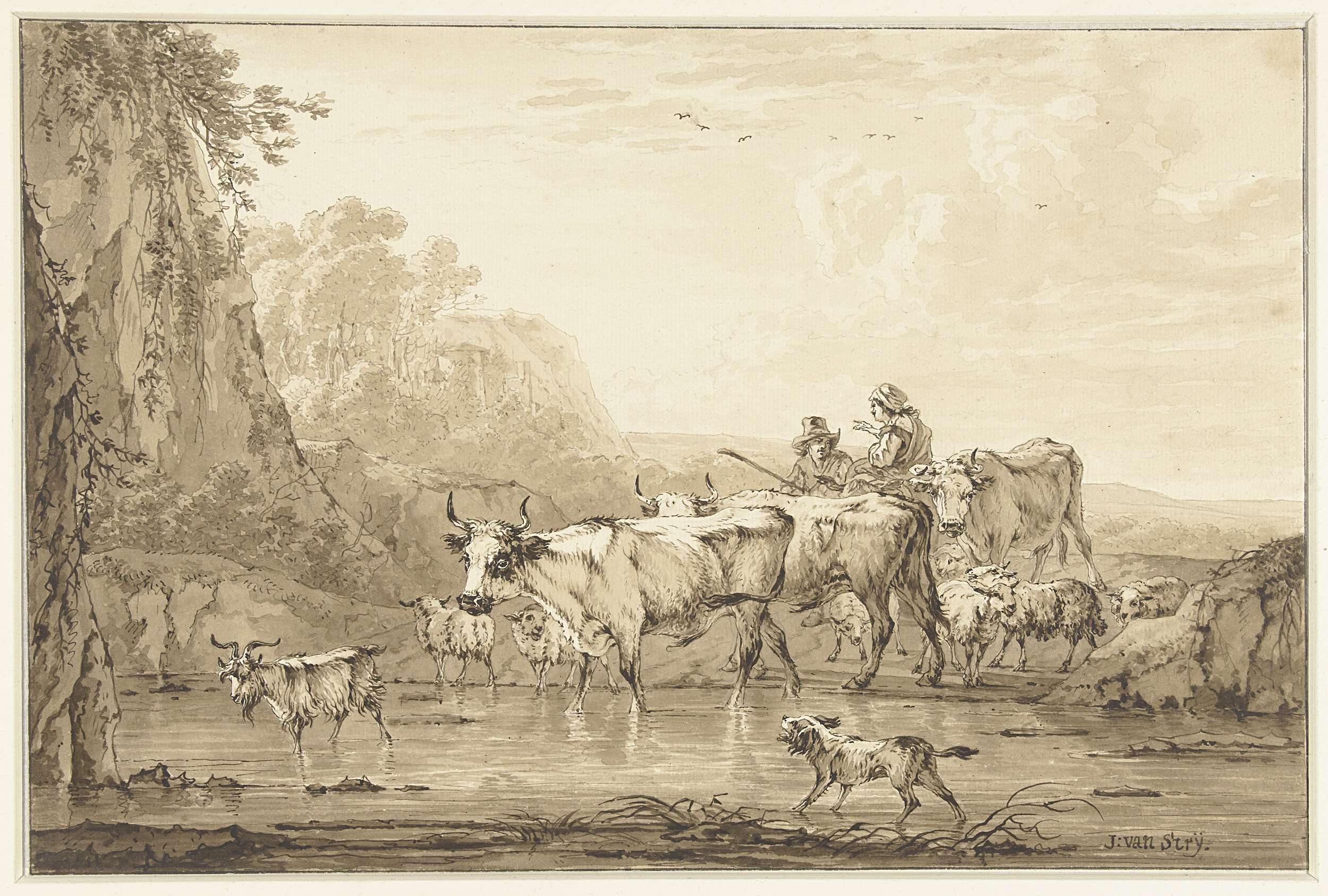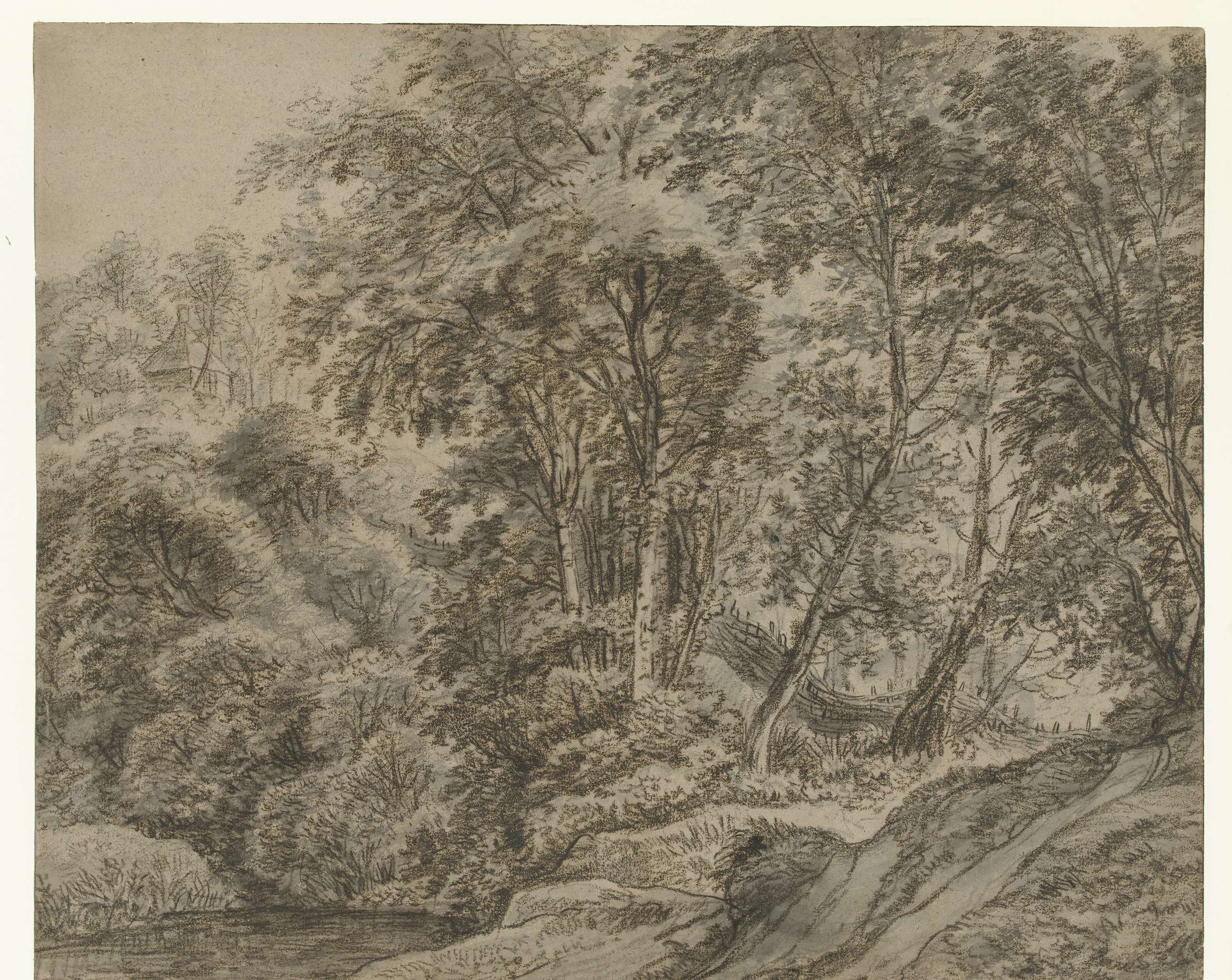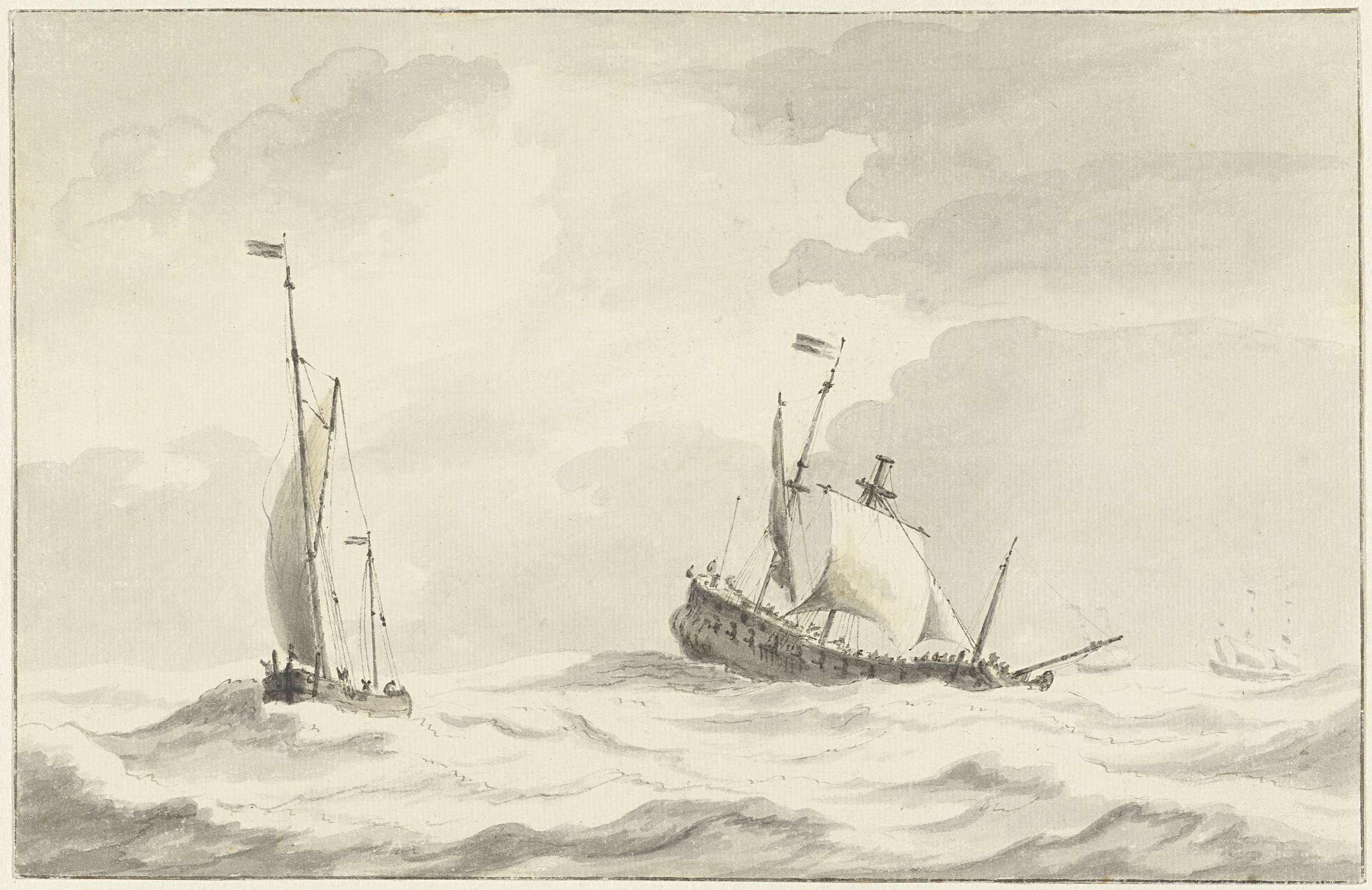 Riviergezicht met enkele schepen, op de achtergrond ...