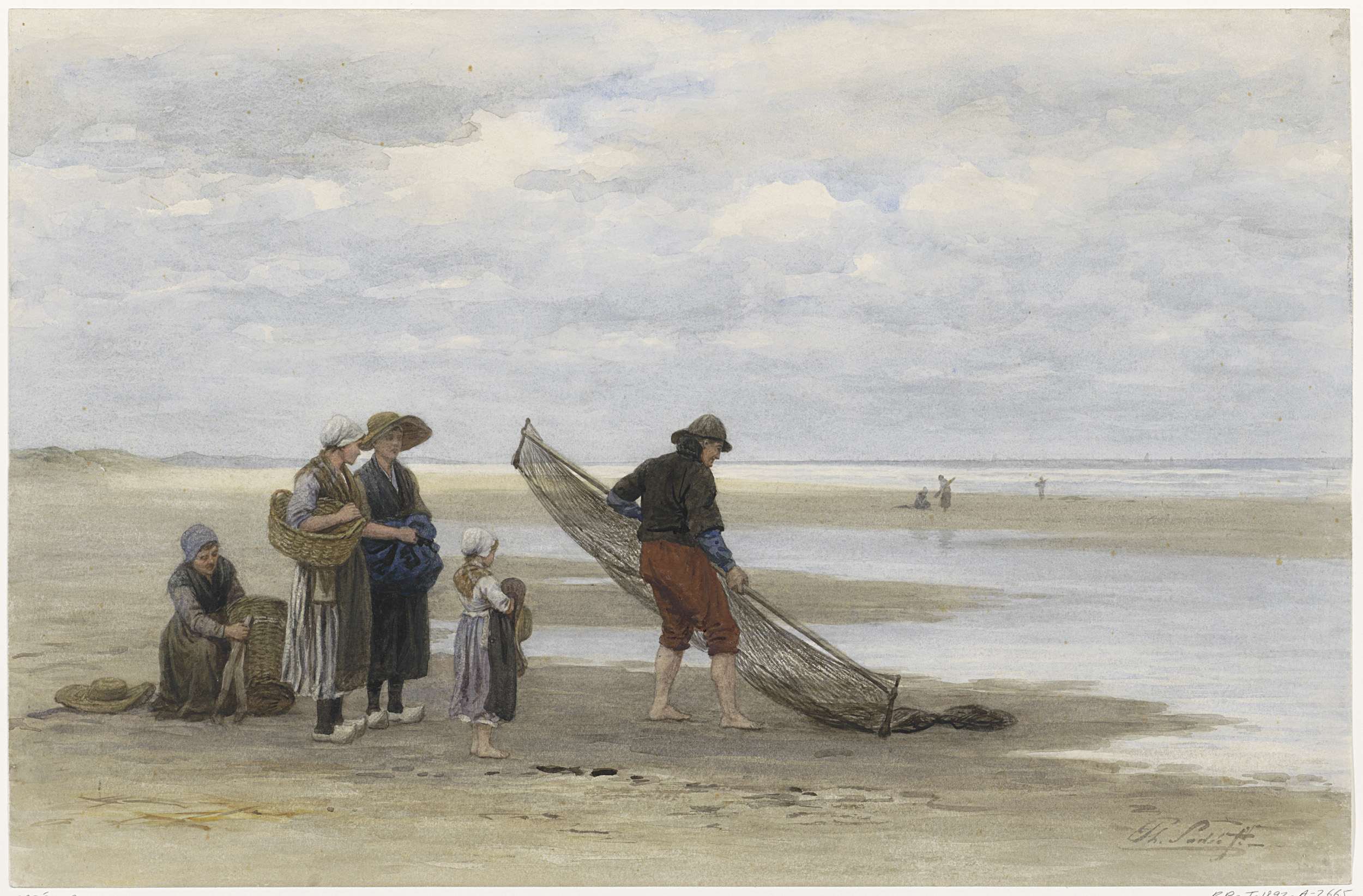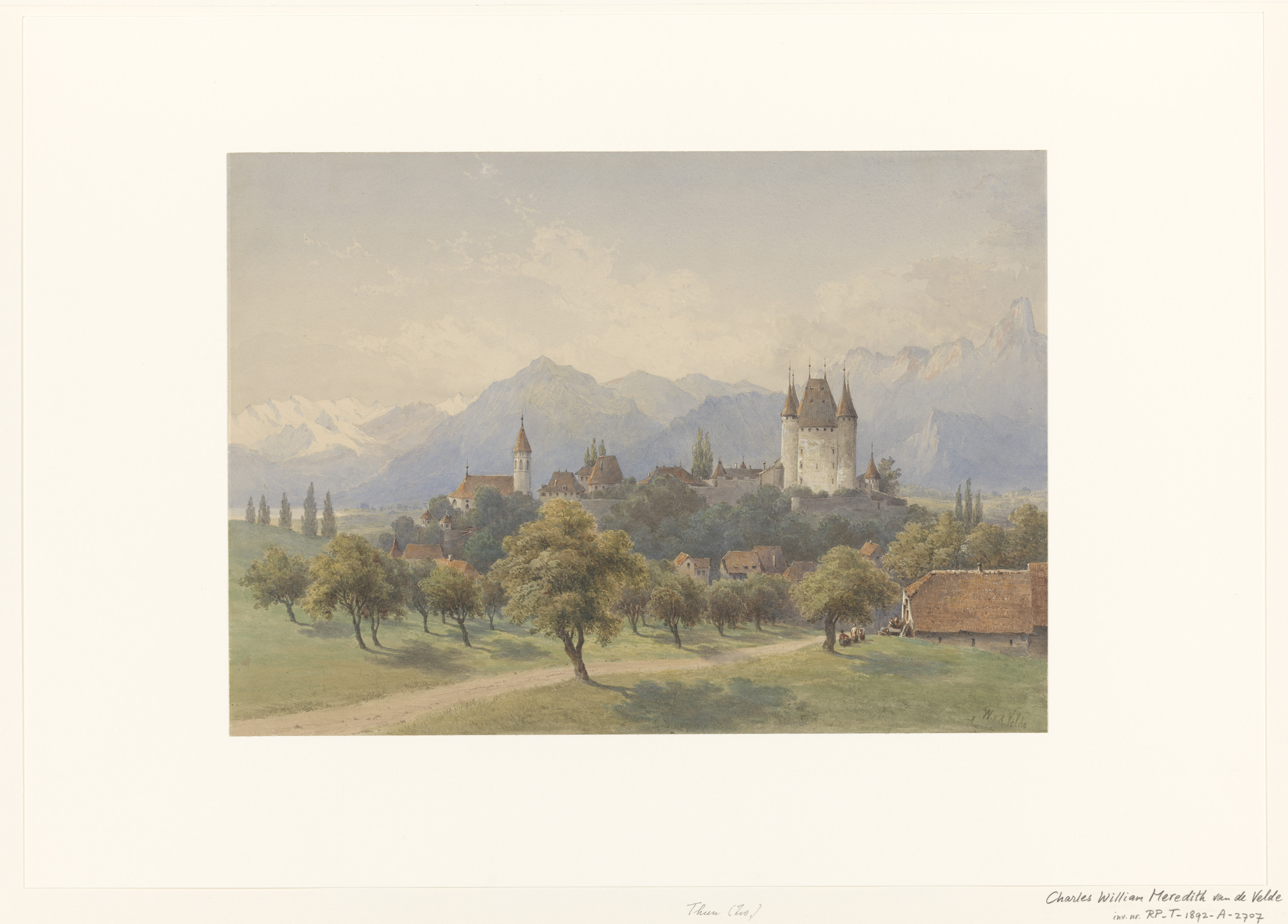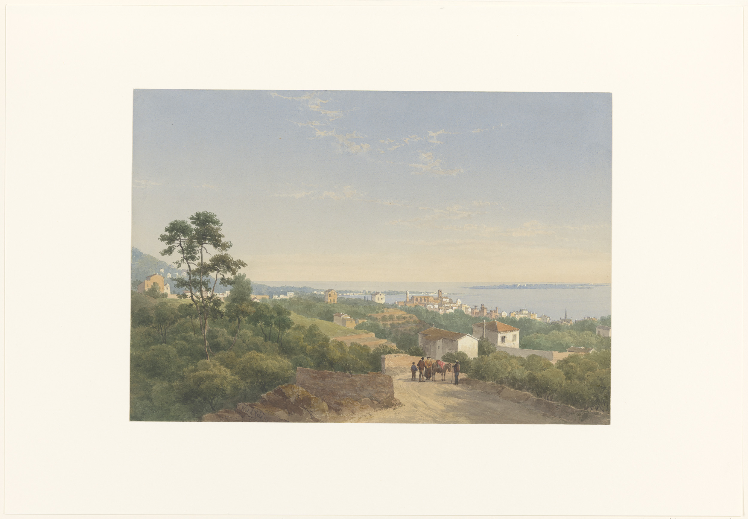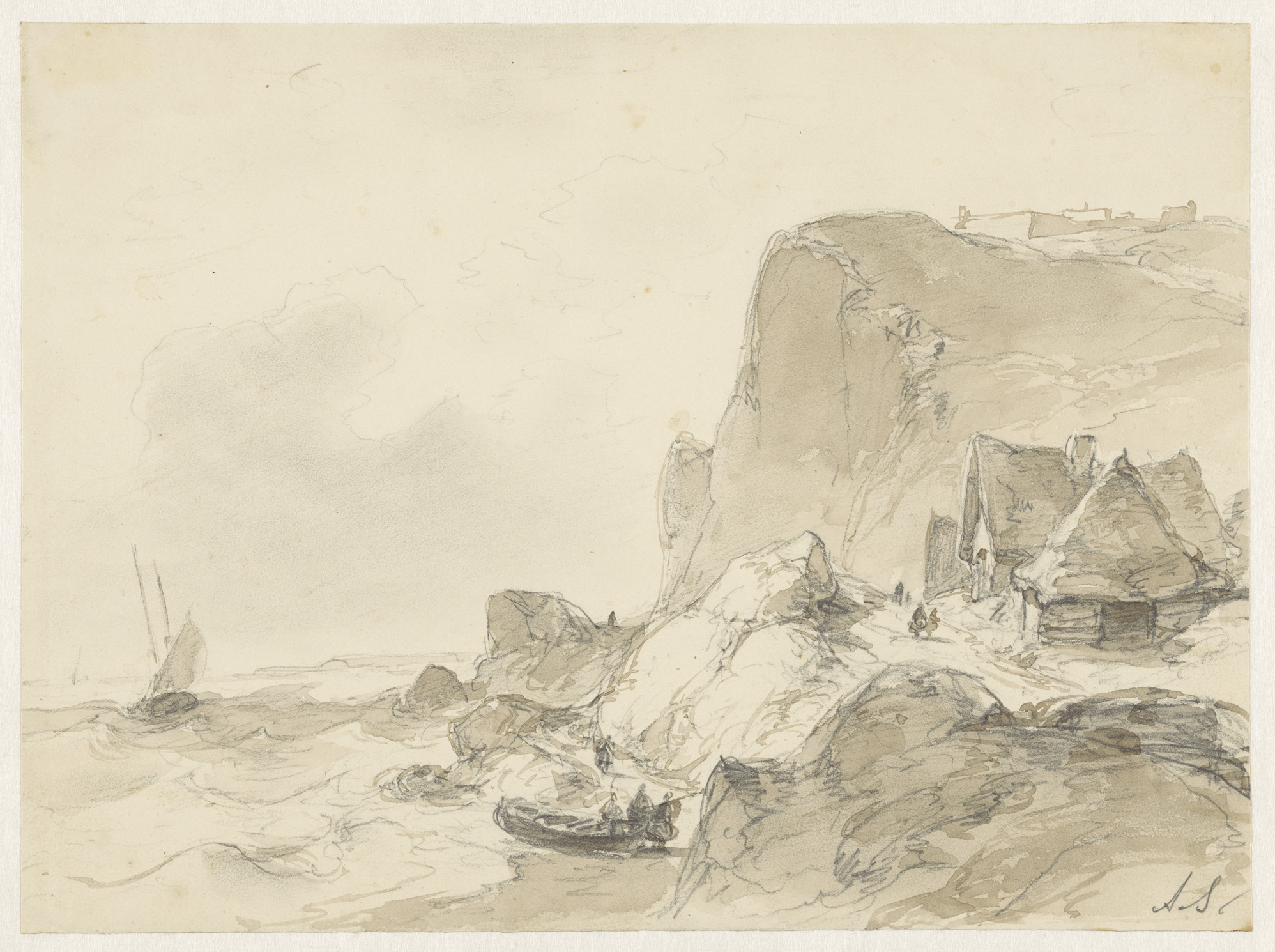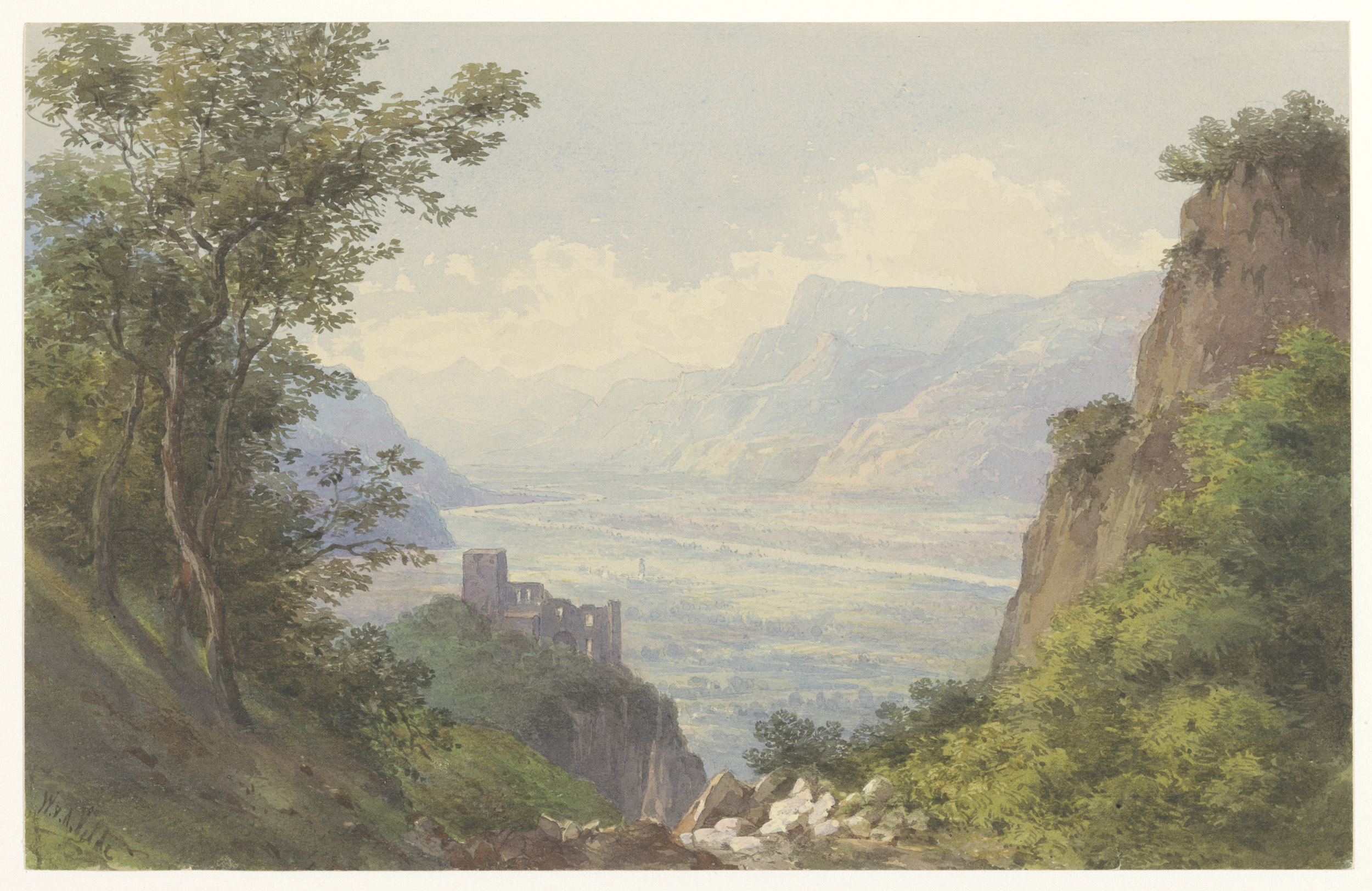 Riviergezicht met enkele schepen, op de achtergrond ...