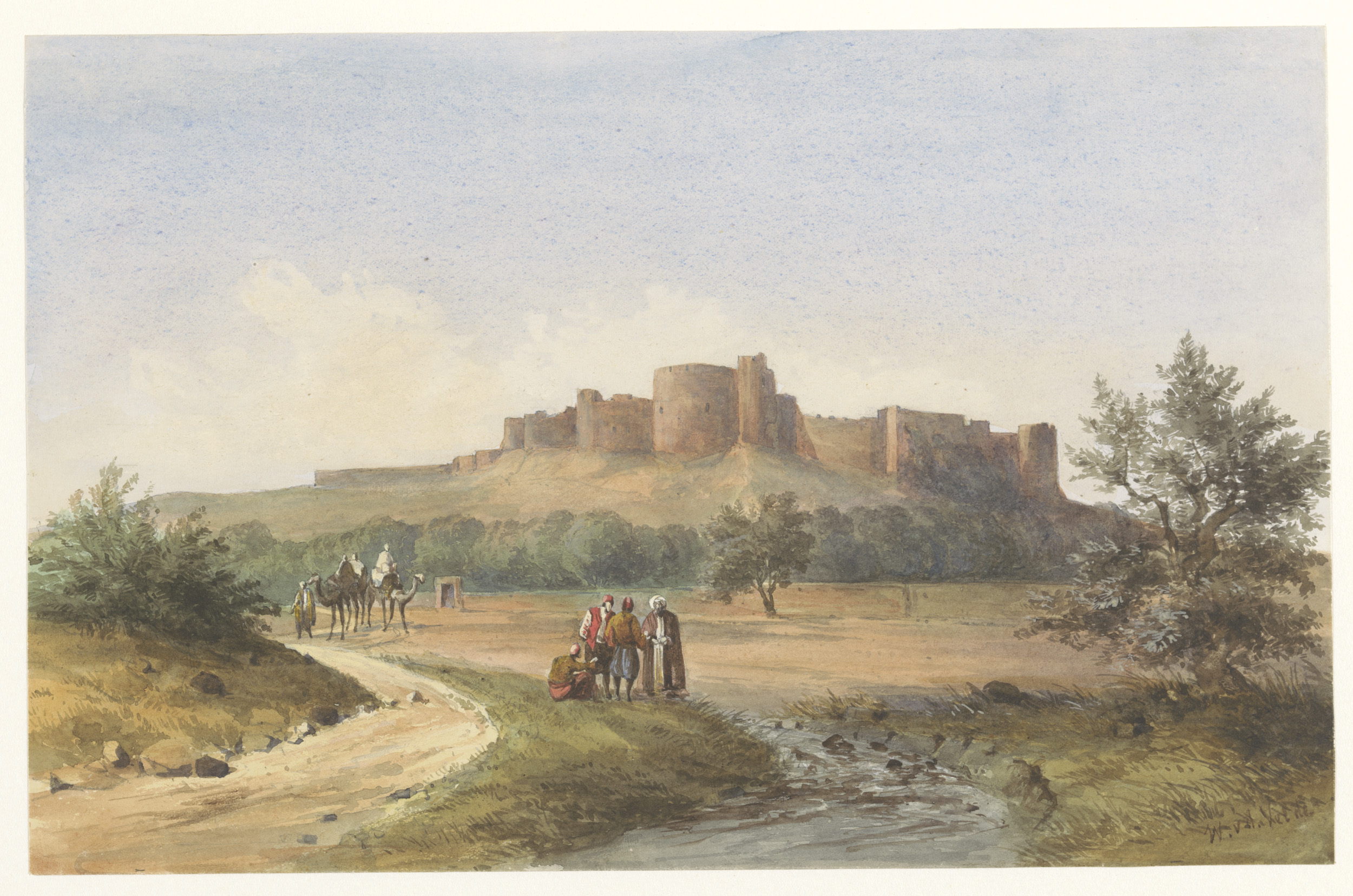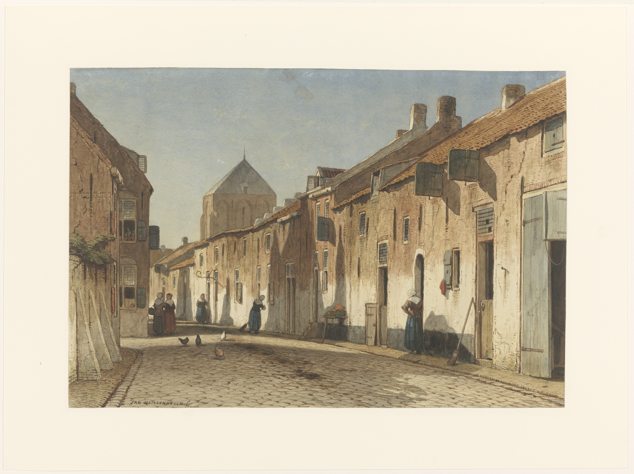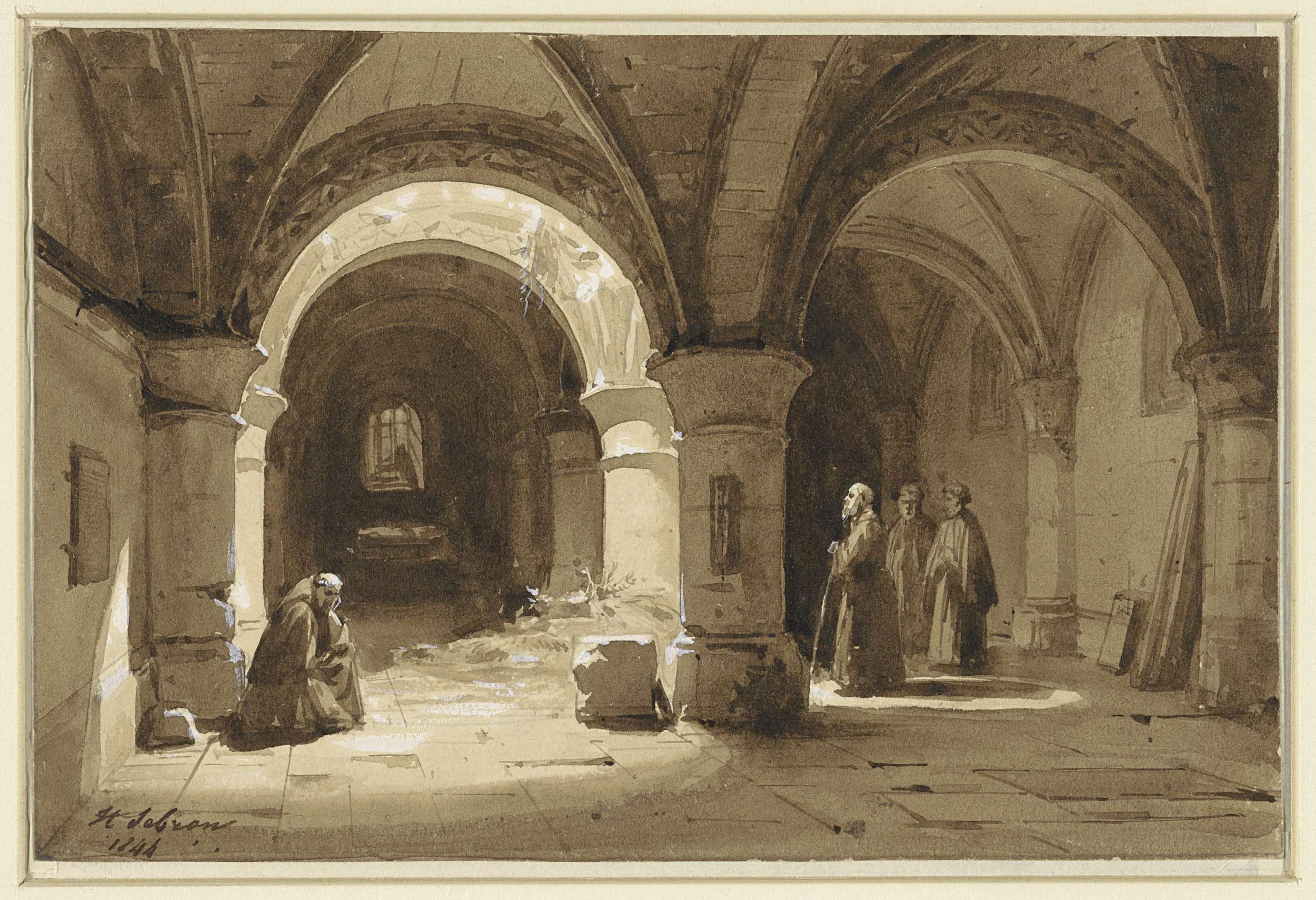Monniken begeven zich naar een kerk, gadegeslagen do...