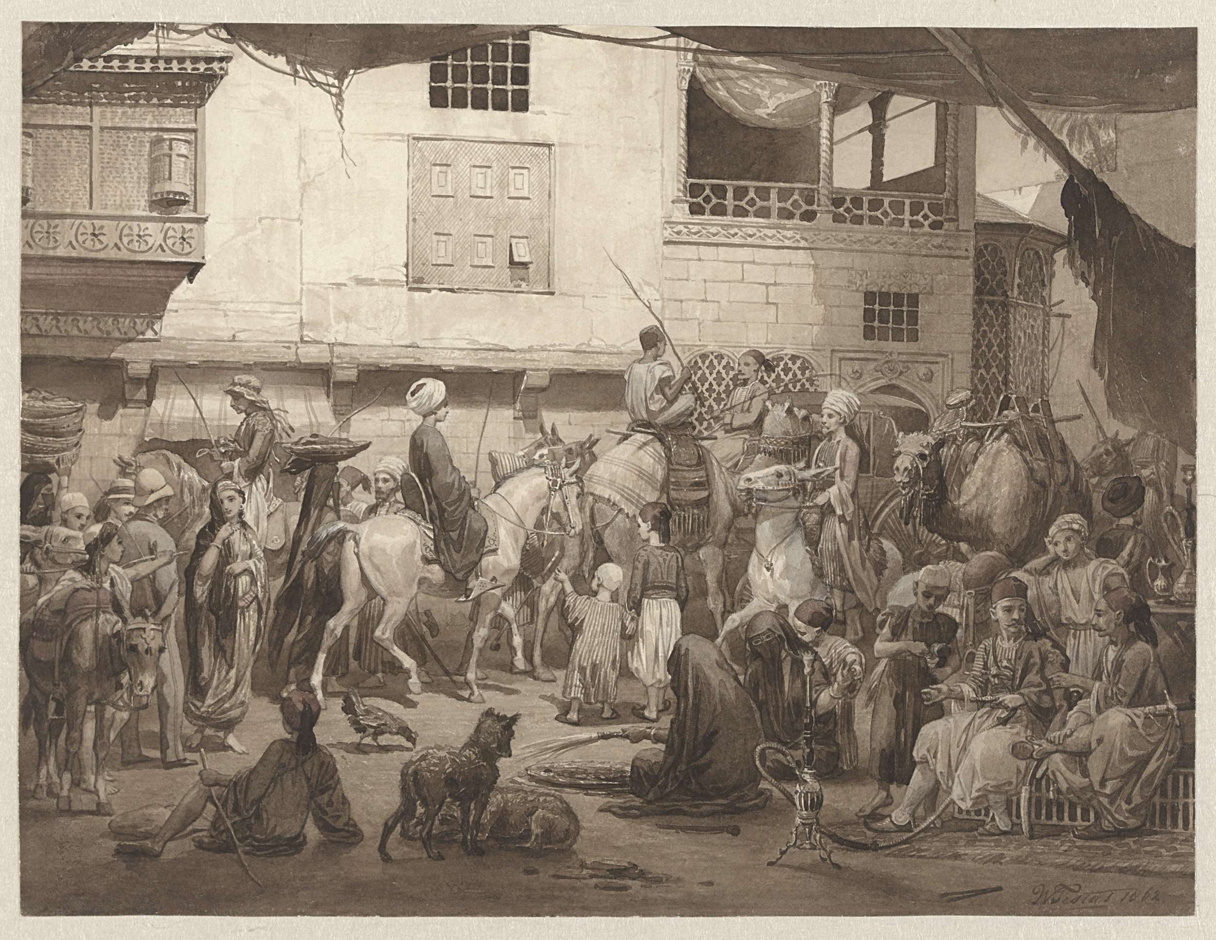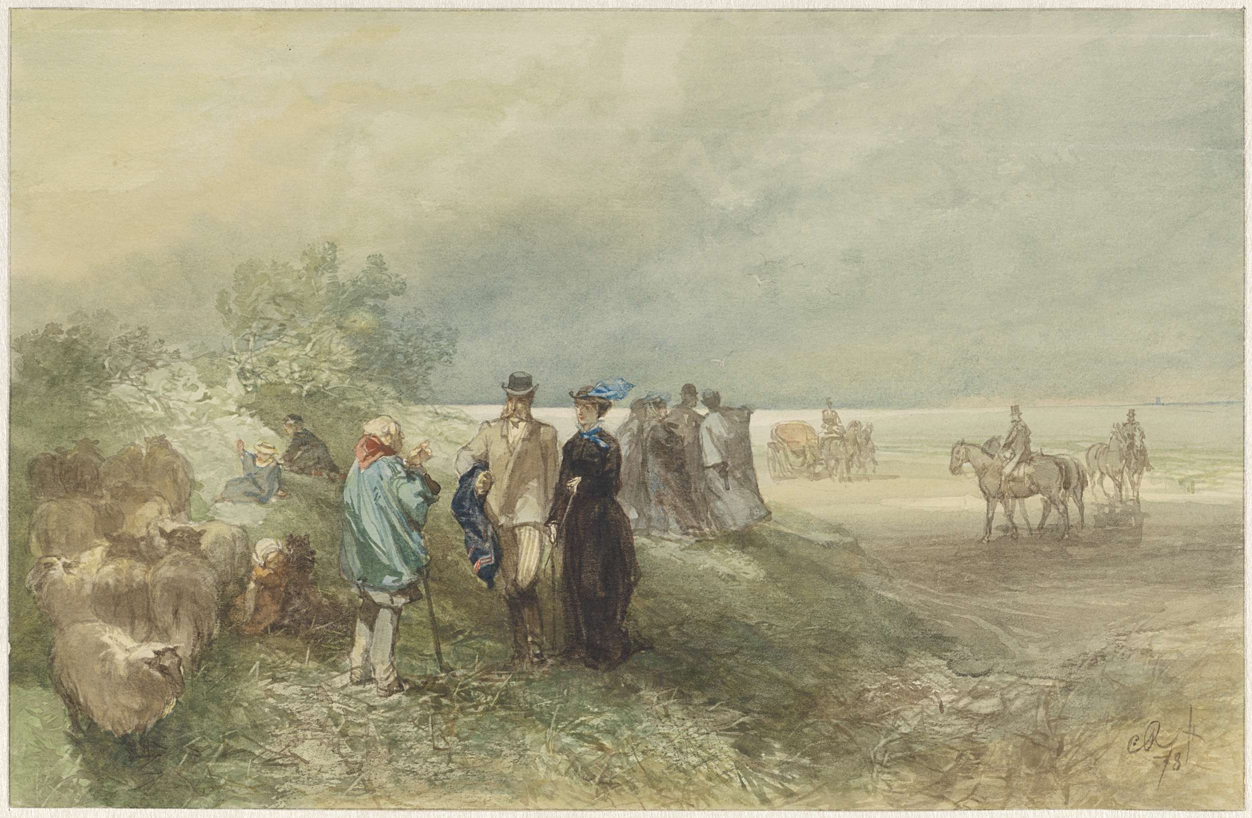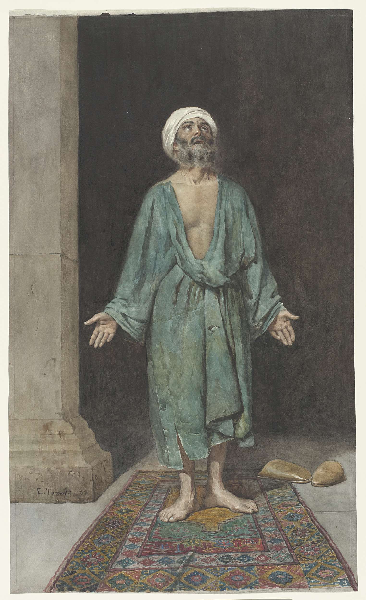 Monniken begeven zich naar een kerk, gadegeslagen do...