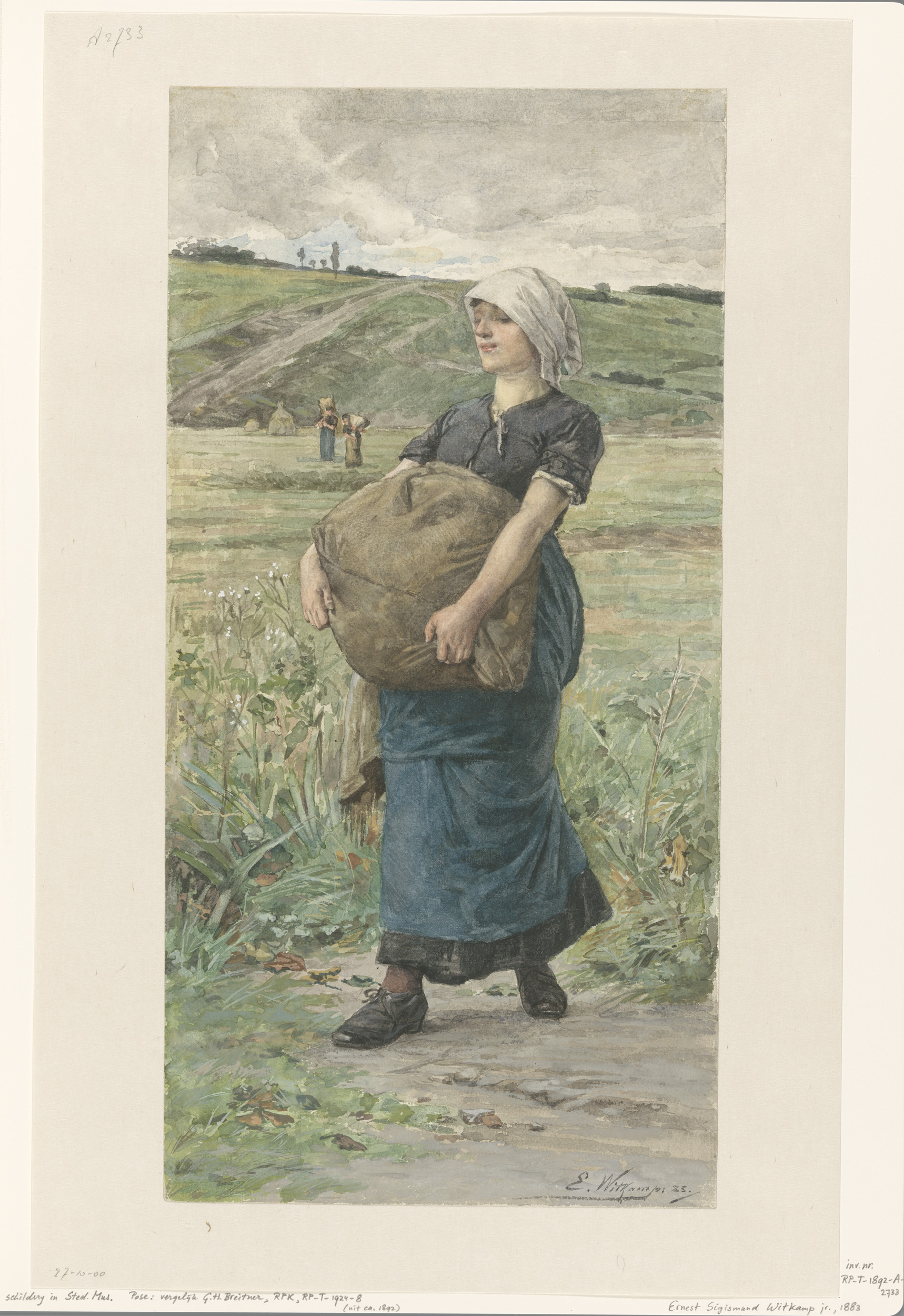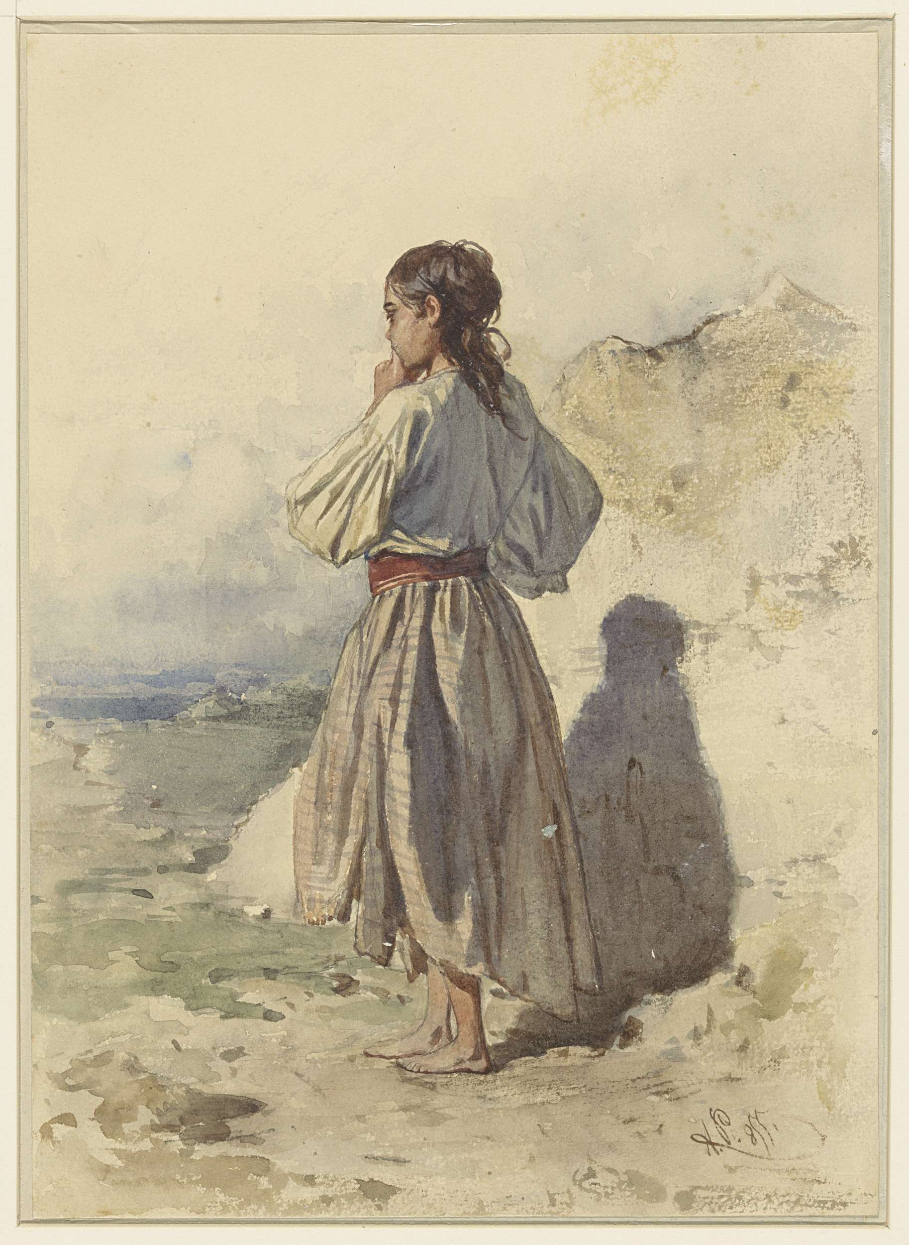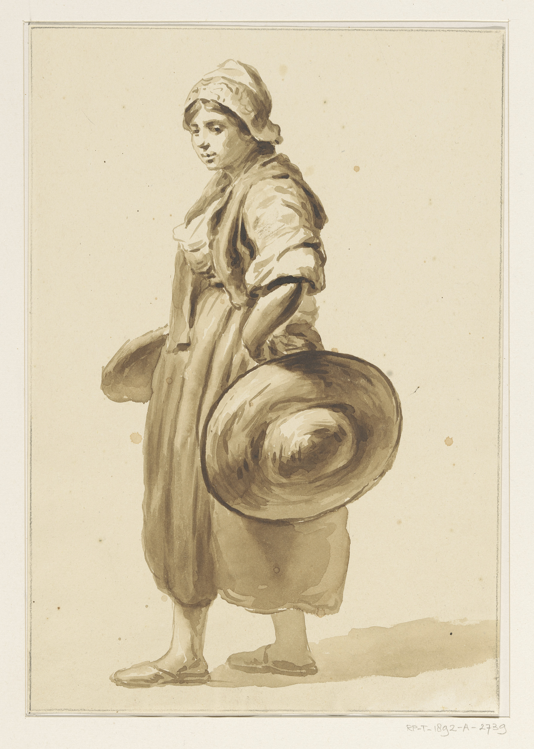 Hongaarse vrouw, staande driekwart naar links, op de...