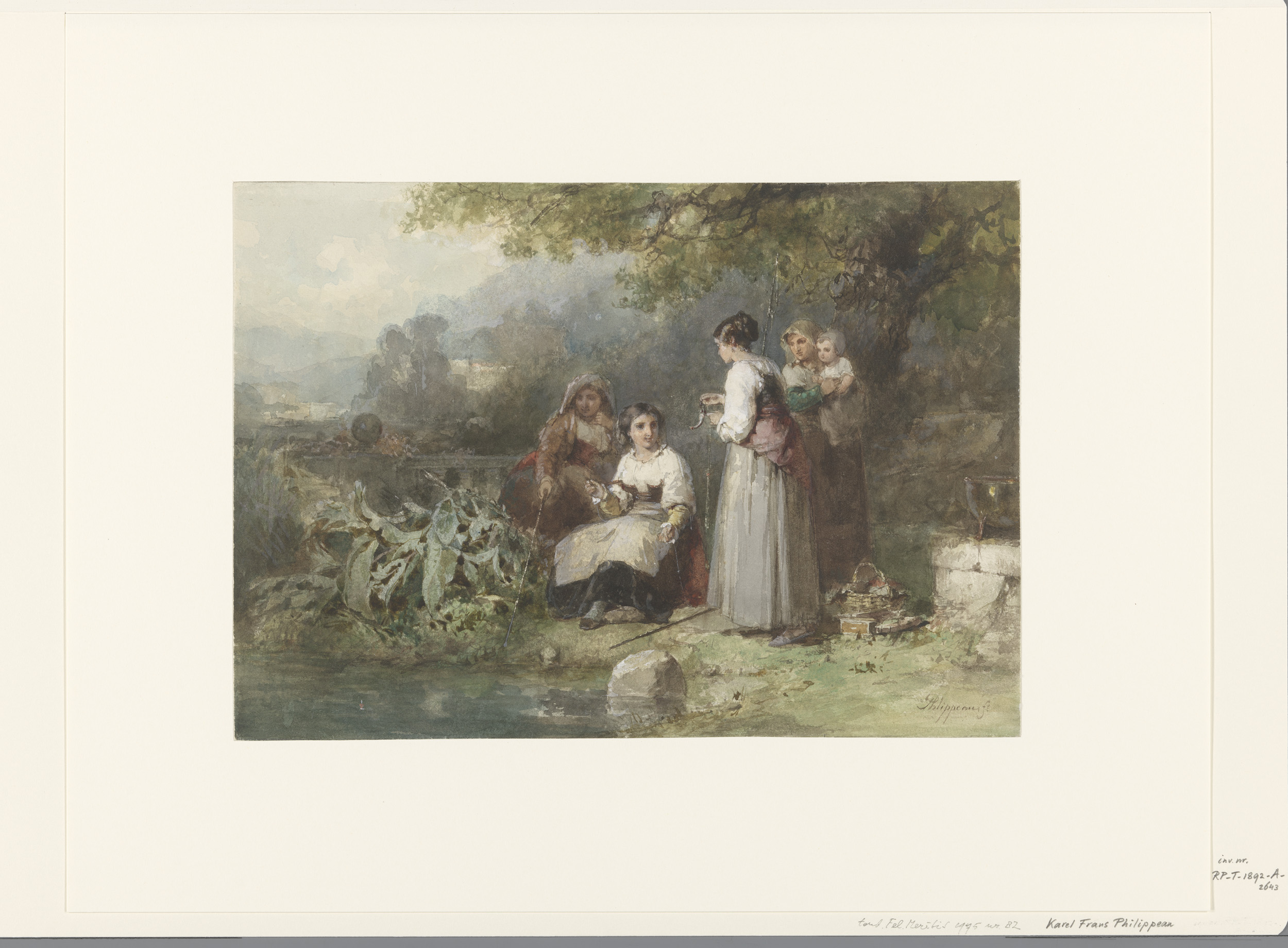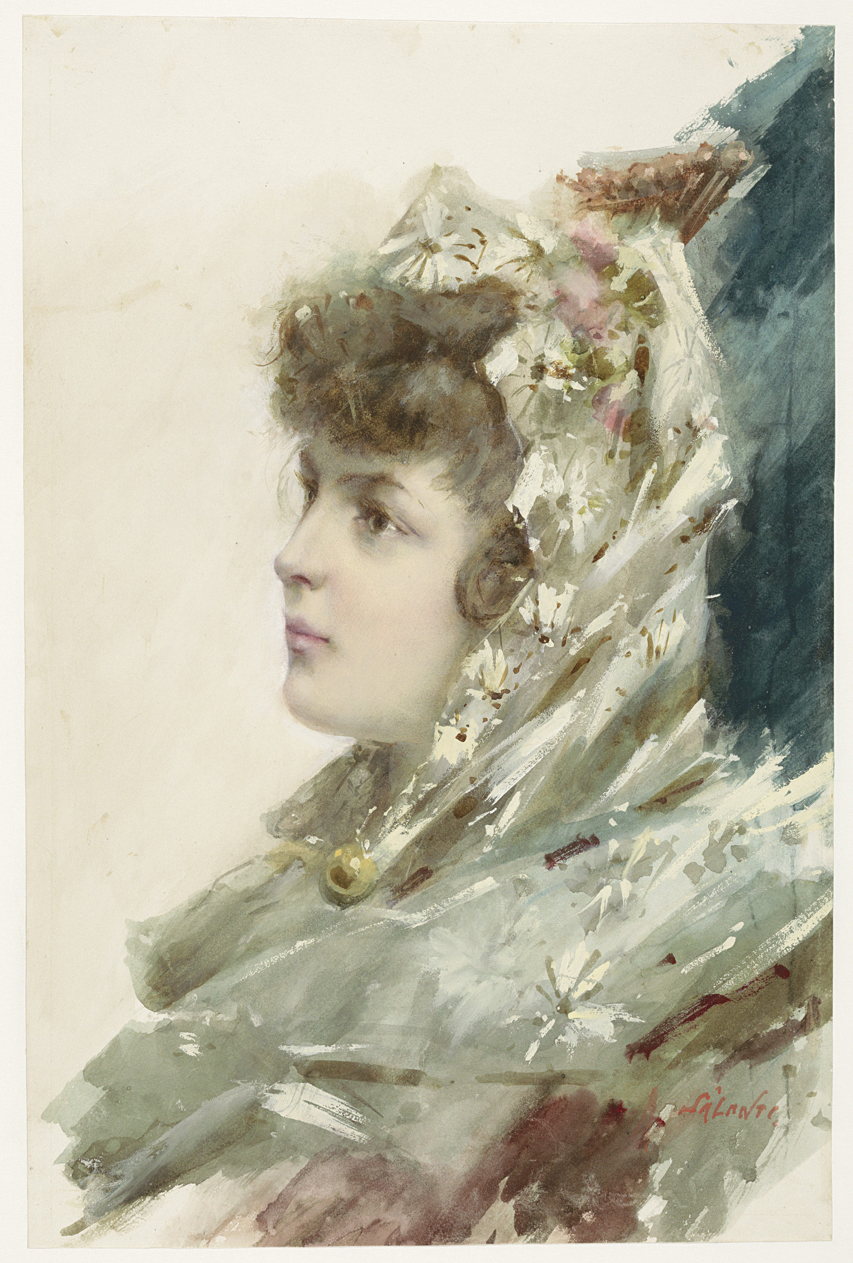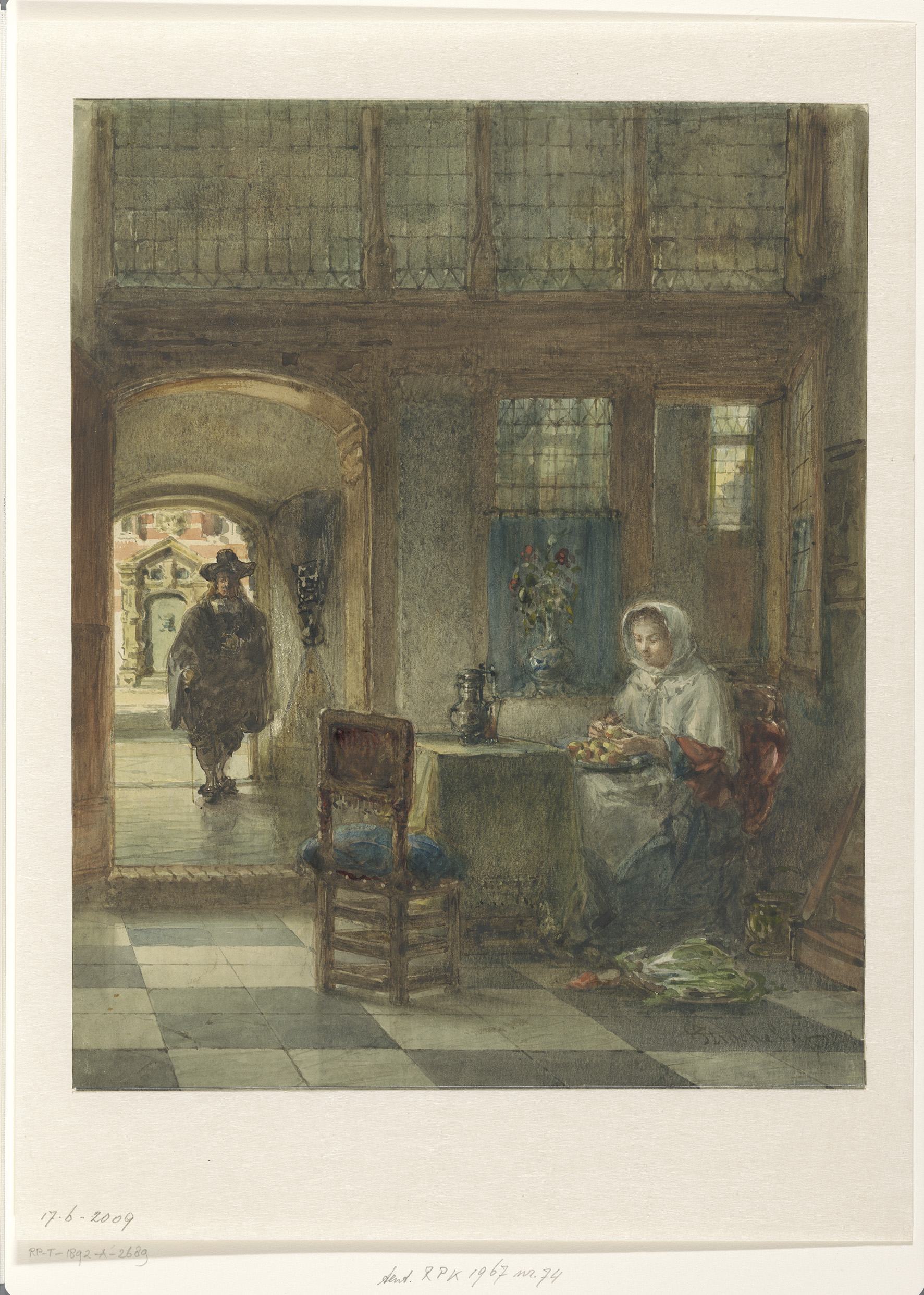 Hongaarse vrouw, staande driekwart naar links, op de...
