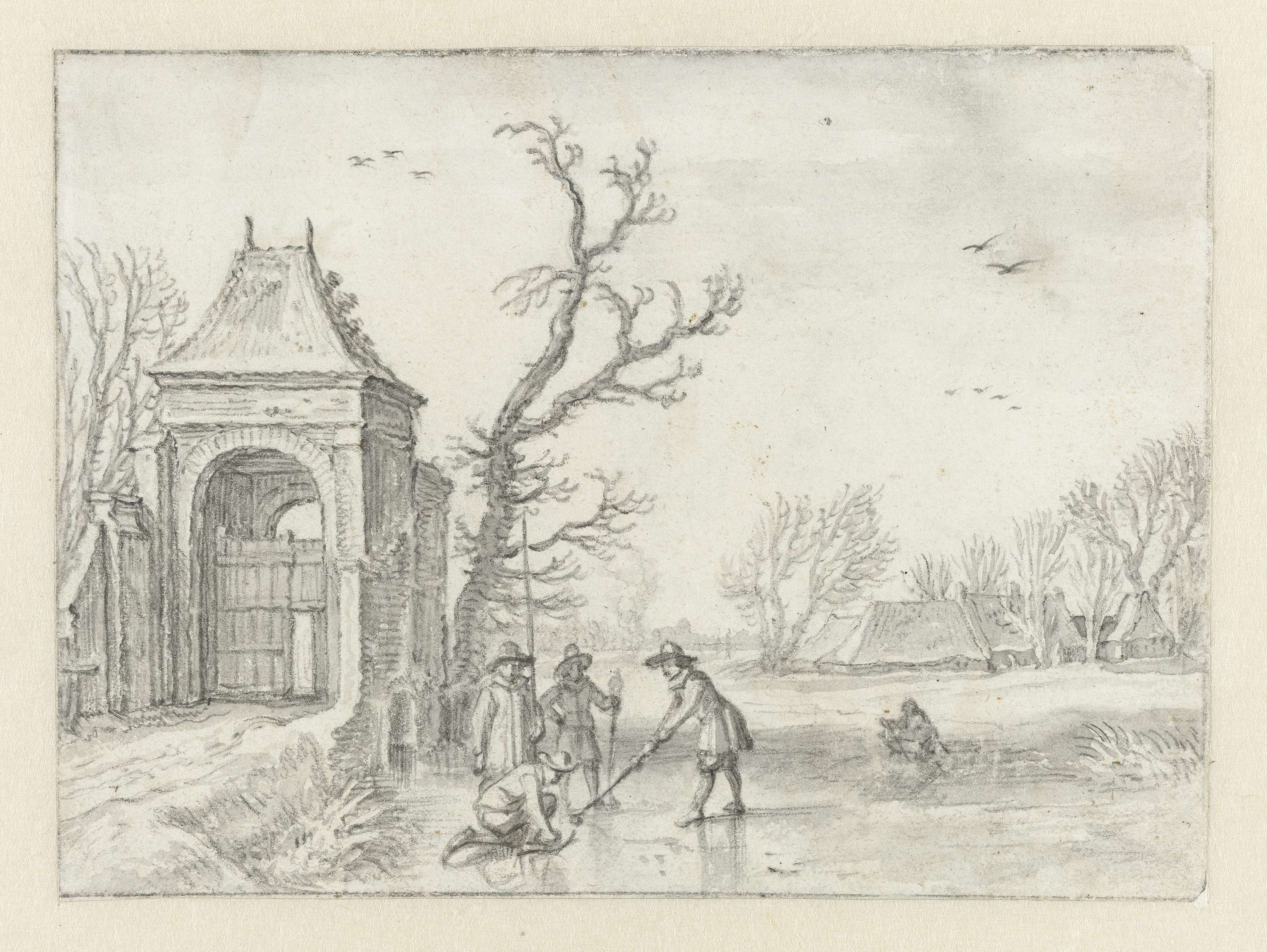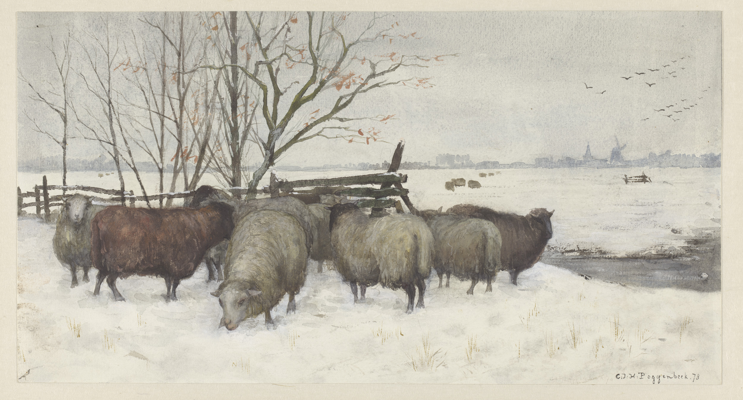 Winterlandschap met knotwilgen langs een bevroren sloot