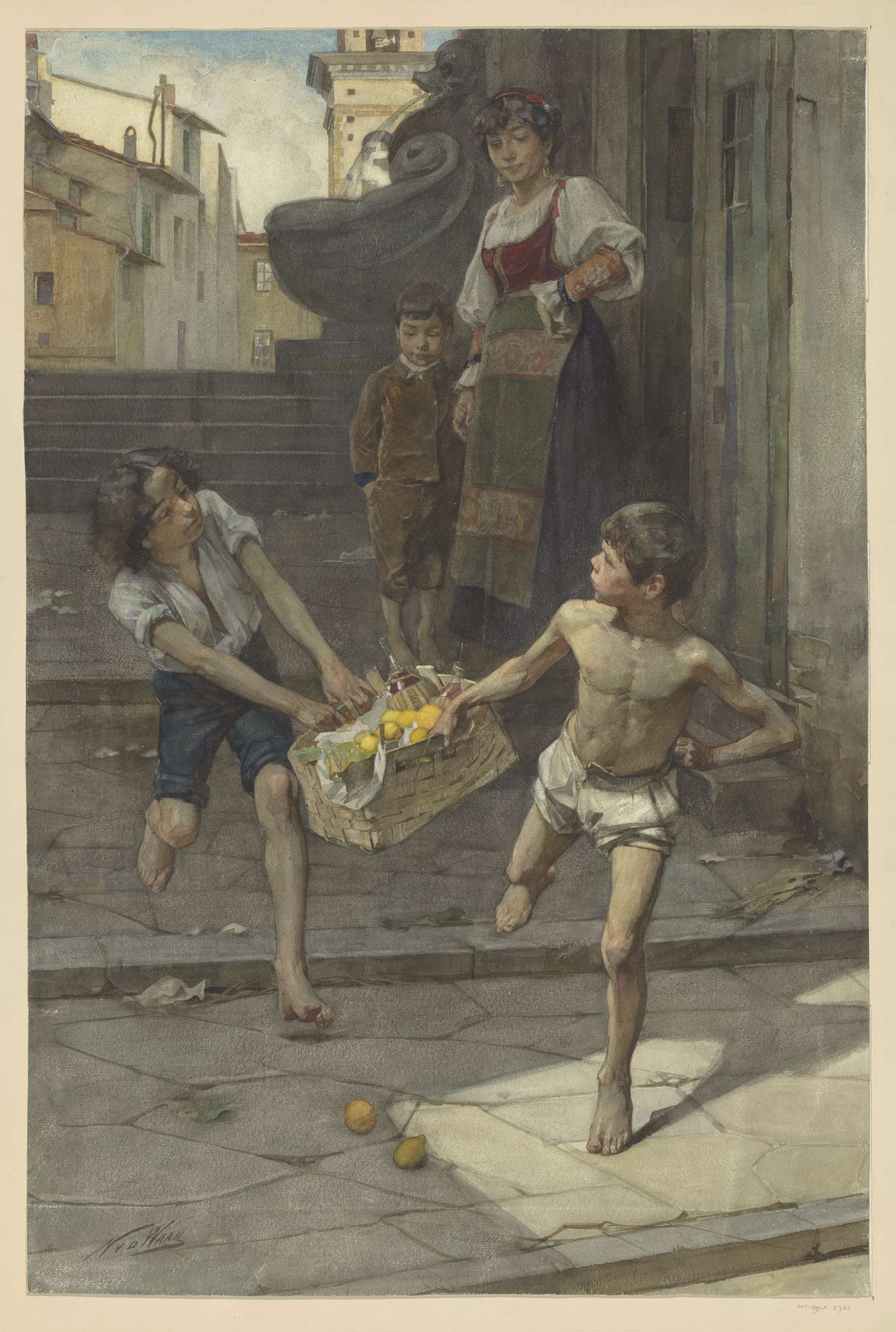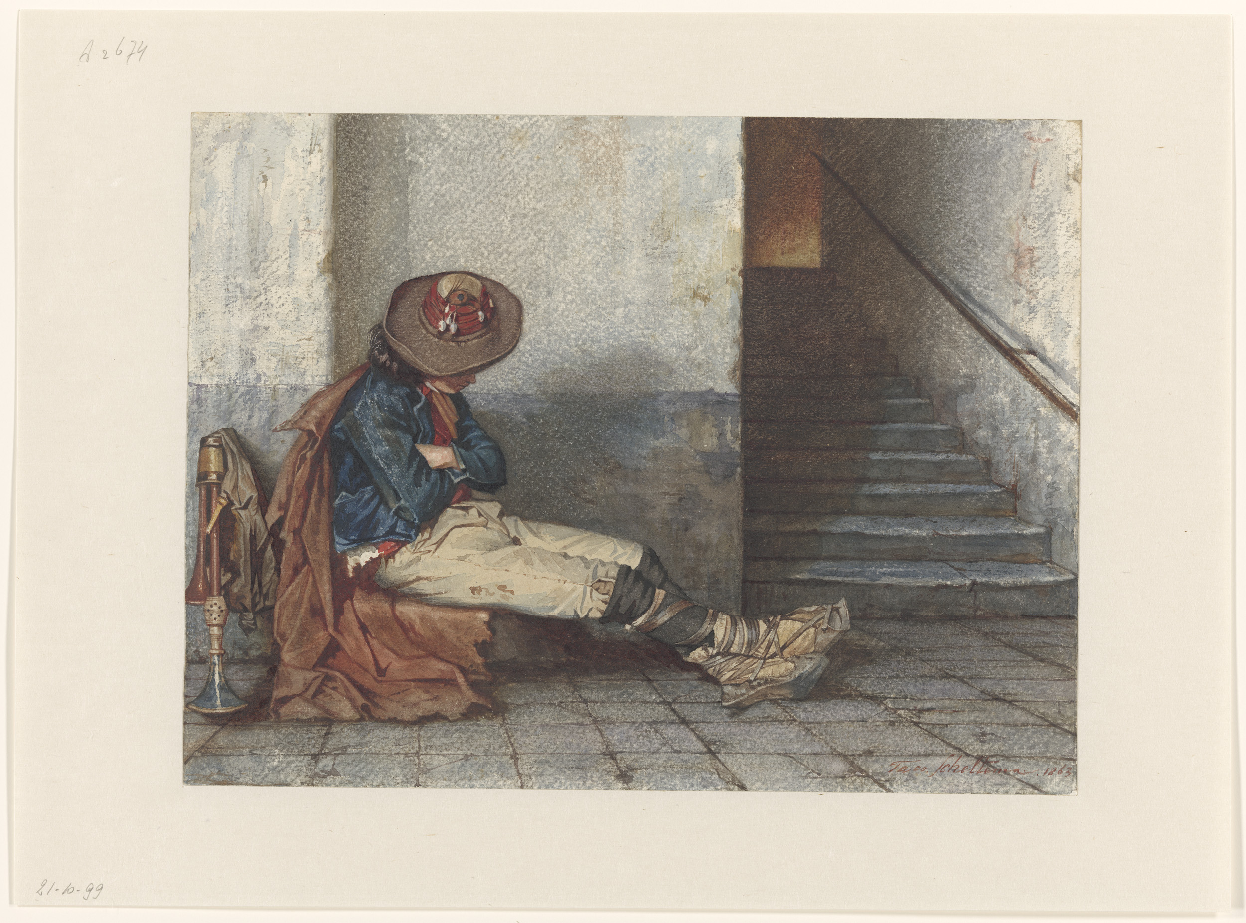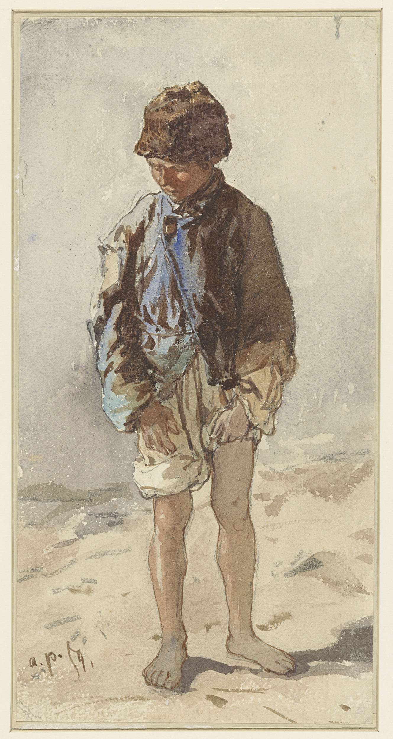 Hongaarse jongen, staande en face, blootsvoets en me...