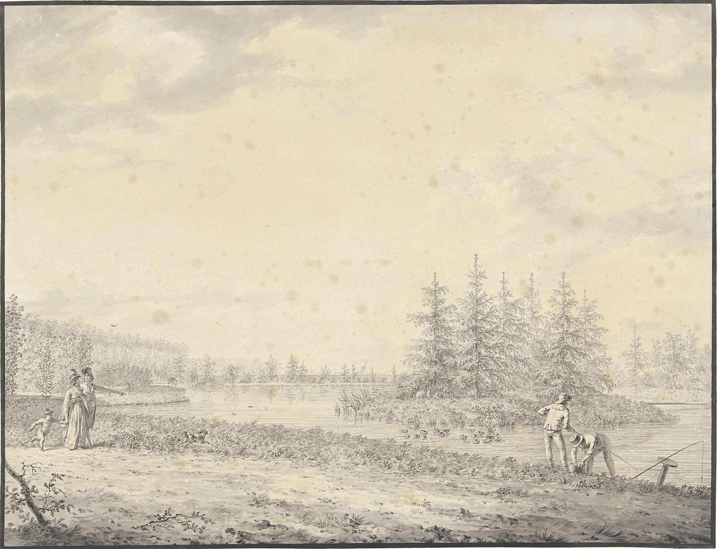 Ontwerp voor kamerbeschildering met landschap met fr...