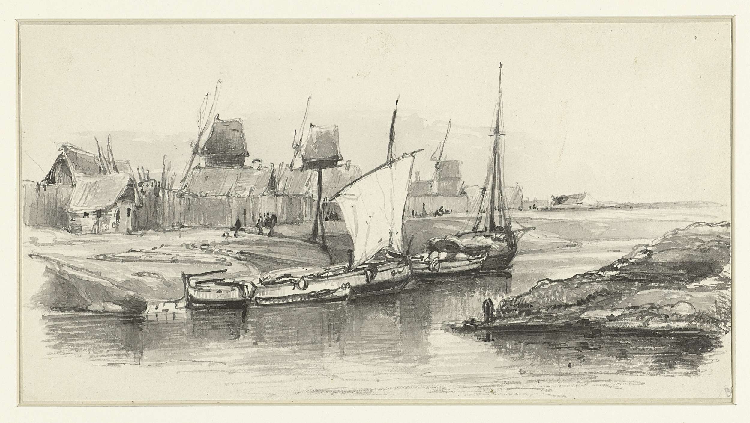 Ontwerp voor kamerbeschildering met rivierlandschap