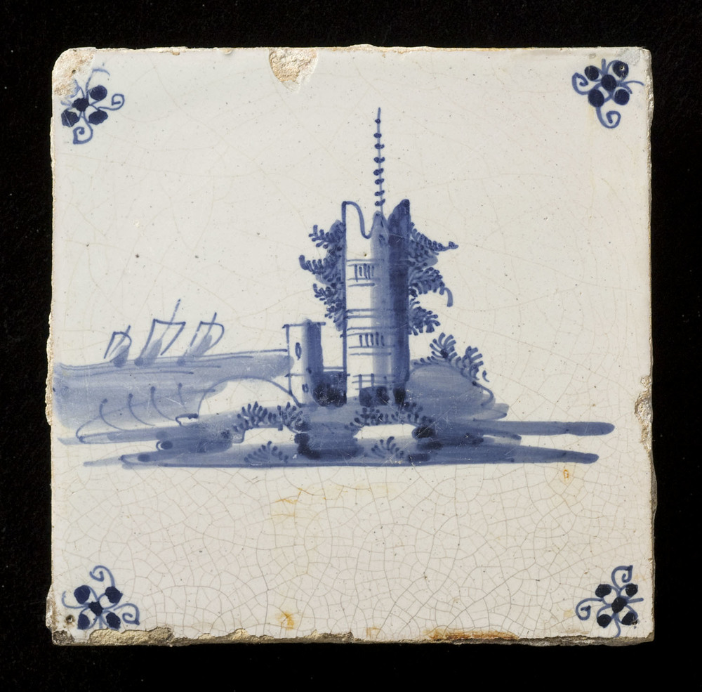 tegel van aardewerk met tinglazuur, voorstellende: h...
