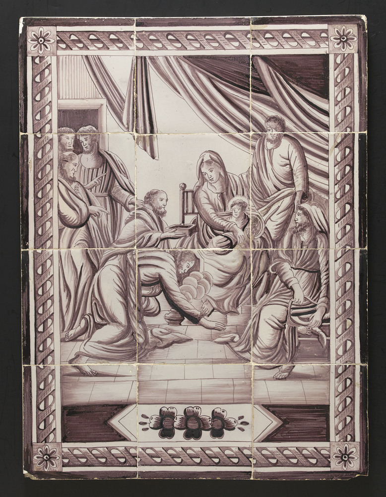 Tegeltableau van keramiek, tinglazuur, voorstellende...