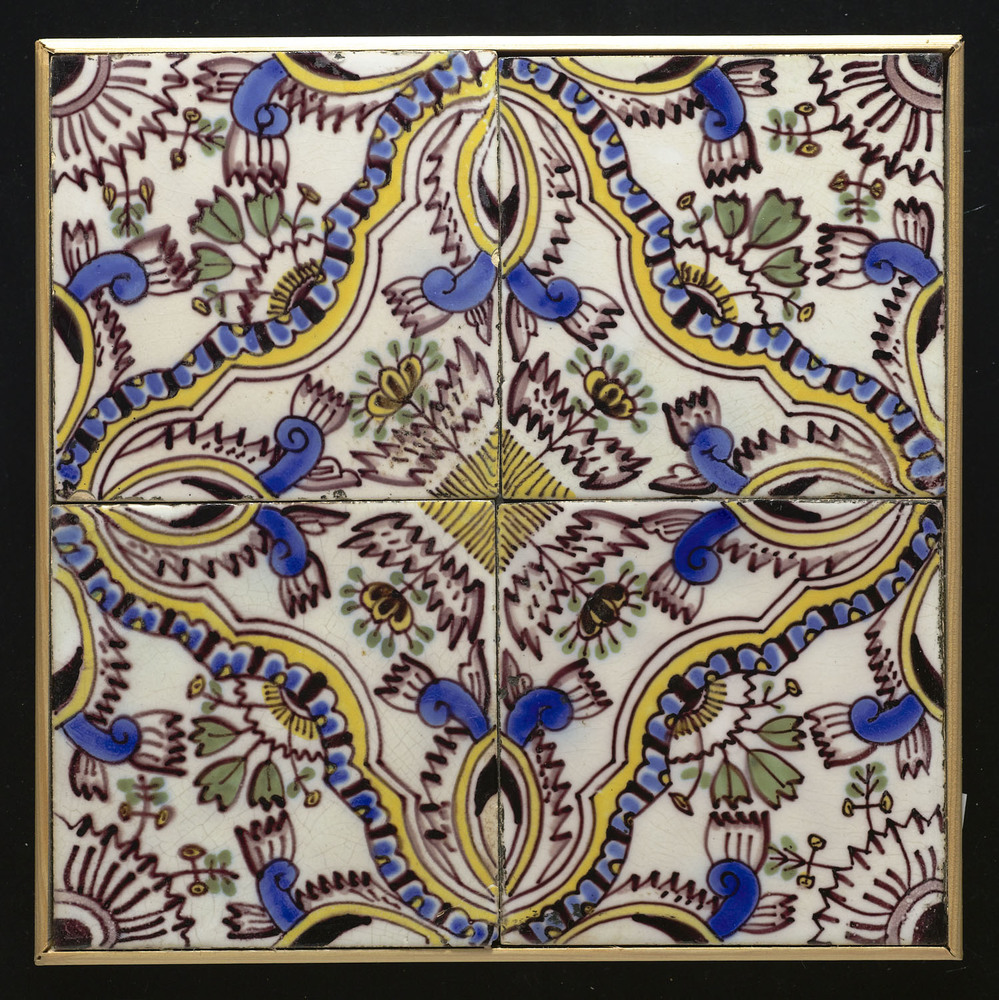 Tegelveld in tinglazuur, voorstellende beugelbladen,...