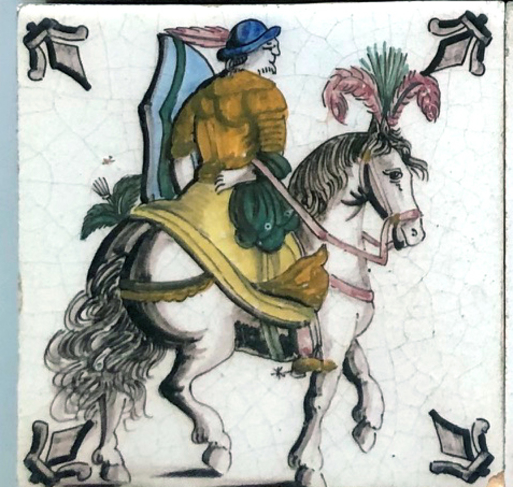 tegel van keramiek met tinglazuur, voorstellende: ru...