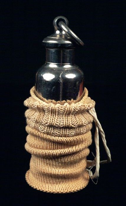 Verchroomde warmwaterkruik met gebreide hoes