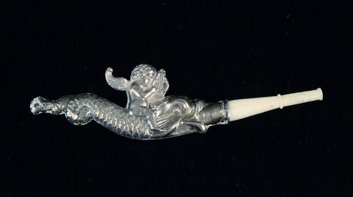 Zilveren pijpje met dolfijn en engeltje