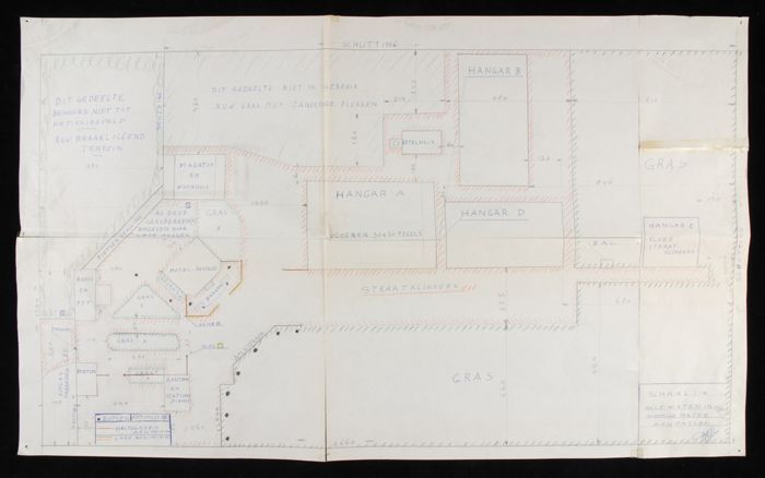 Getekende plattegrond van het vliegveldterrein en pl...