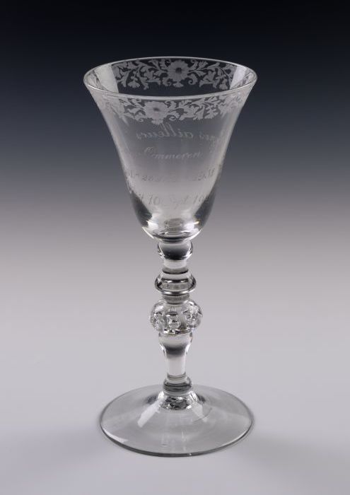 Kelkglas, gelegenheidsglas gegraveerd met rand met b...