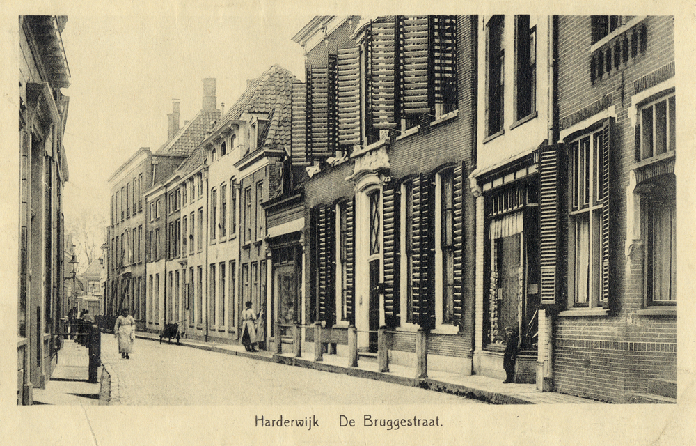 Prentbriefkaart, getiteld 'Harderwijk De Bruggestraat'