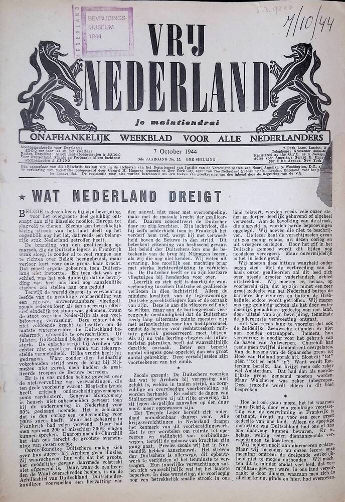 Vrij Nederland, gedrukt te Londen, 16 juni 1945