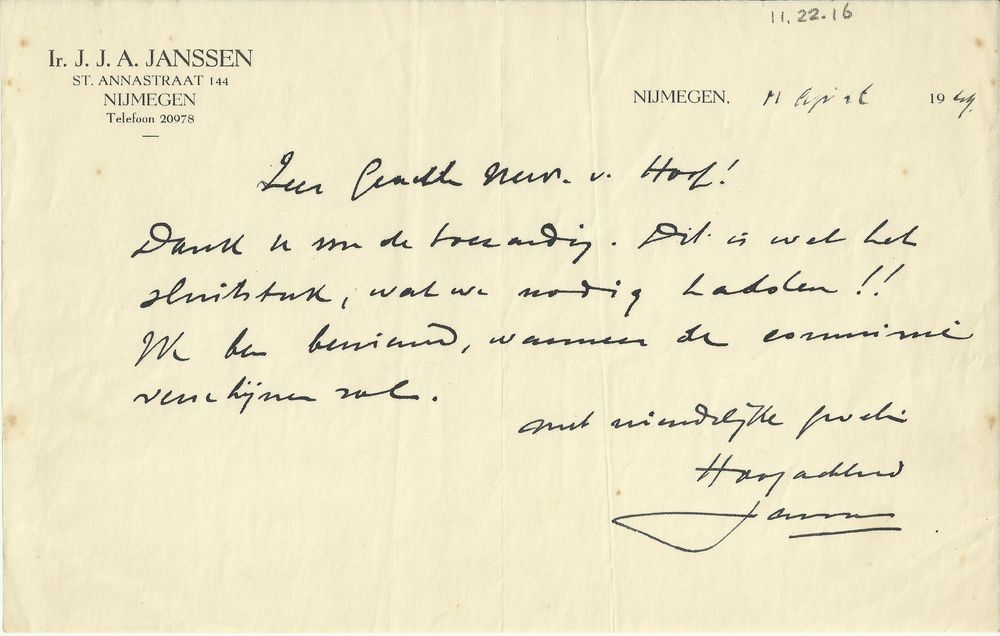 Brief: 11 januari 1943, aan Fam.v.d. Bent