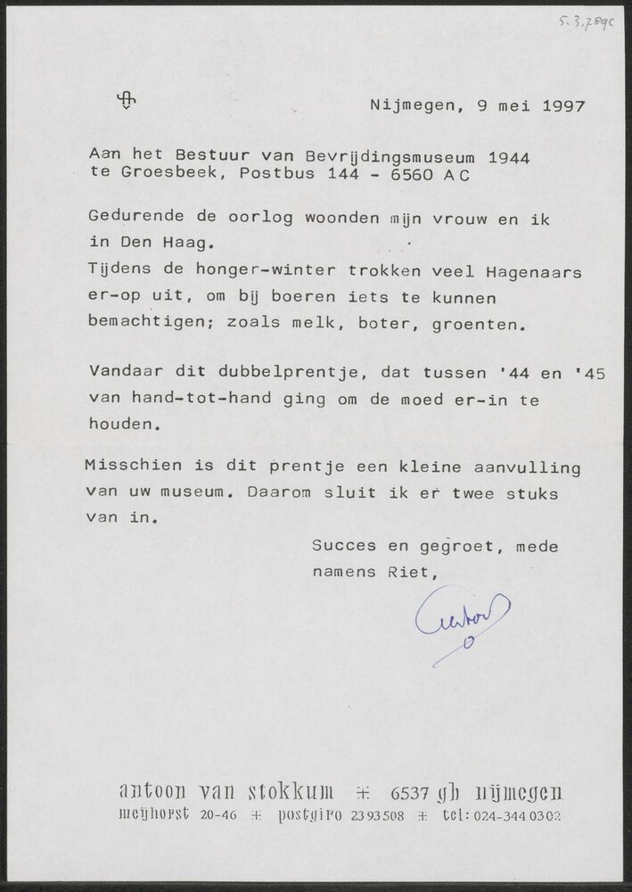 Brief behorende bij het grapje "Melk zonder bon" van...