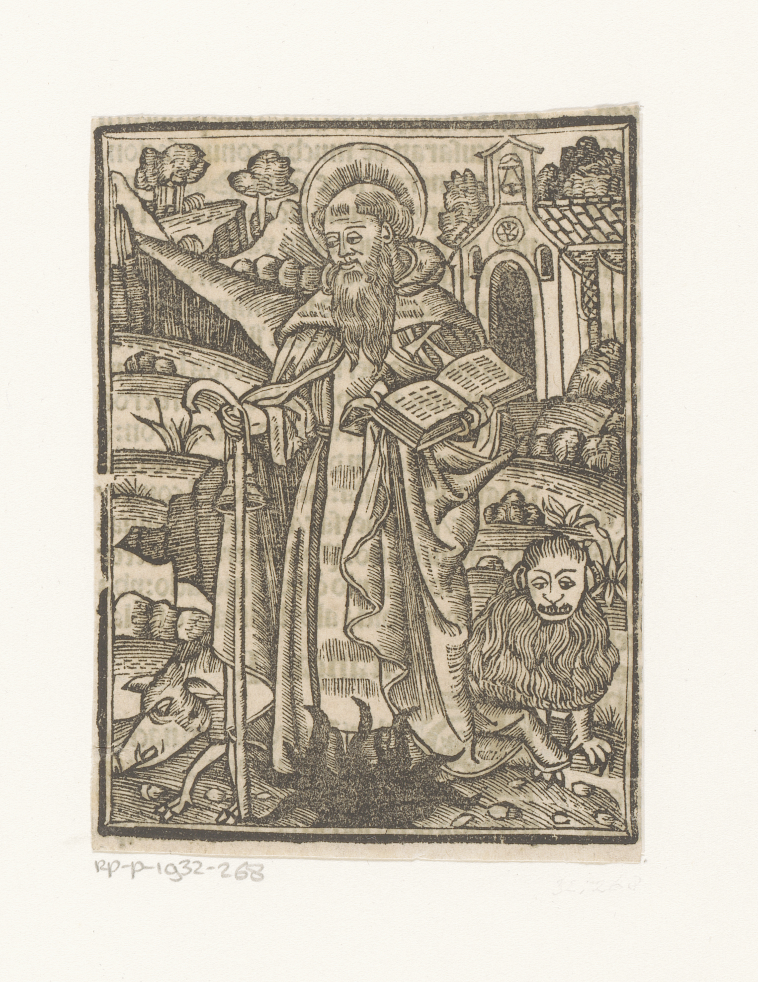 H. Hieronymus staand met een staf en een open boek n...
