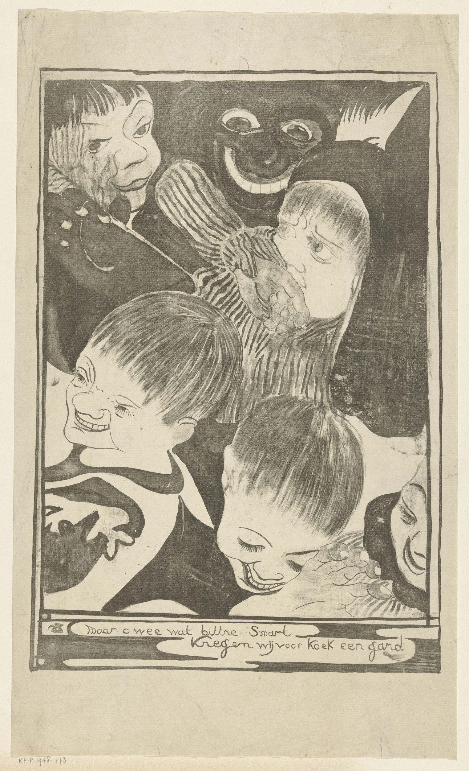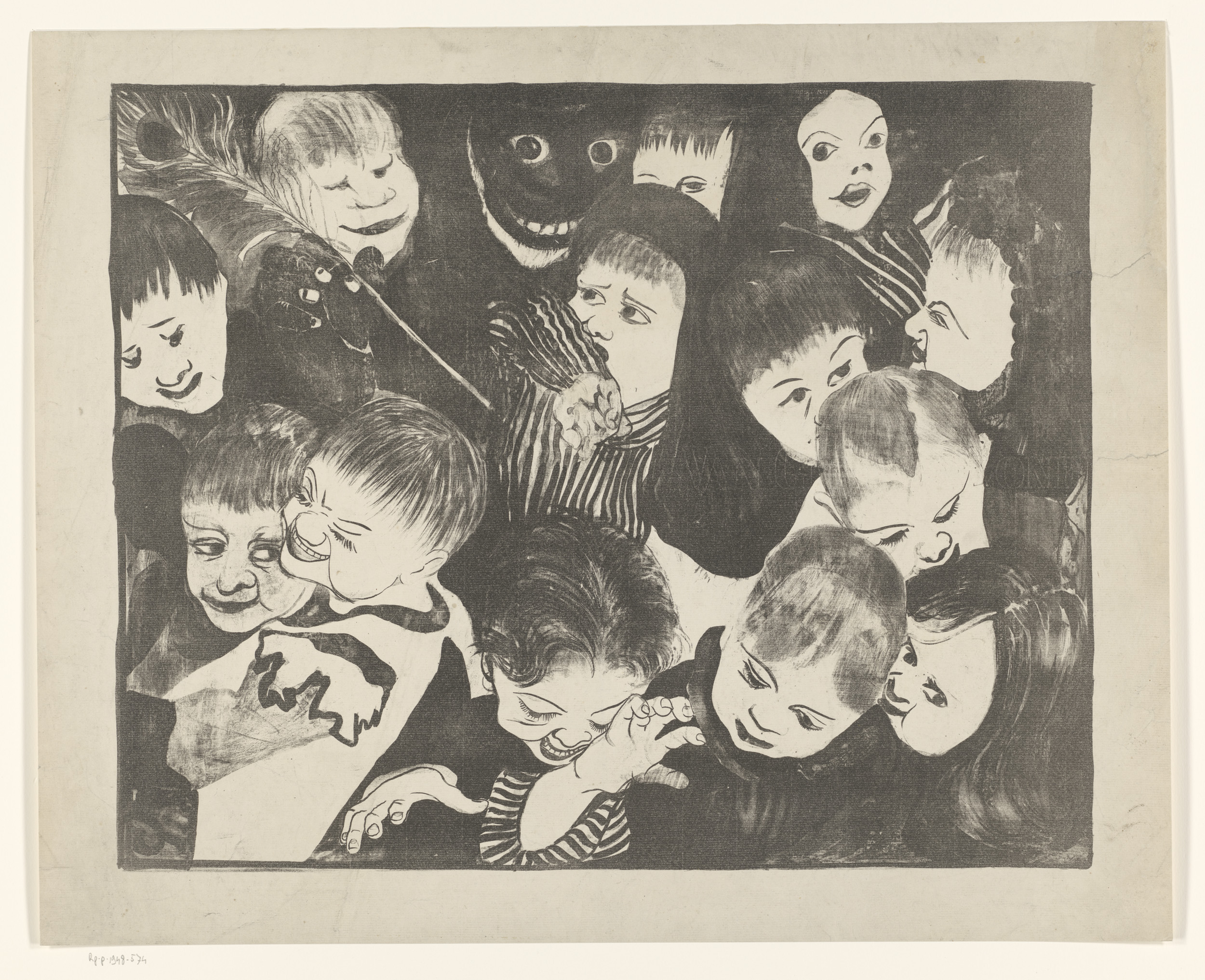 Kinderhoofden en grijnzend gezicht