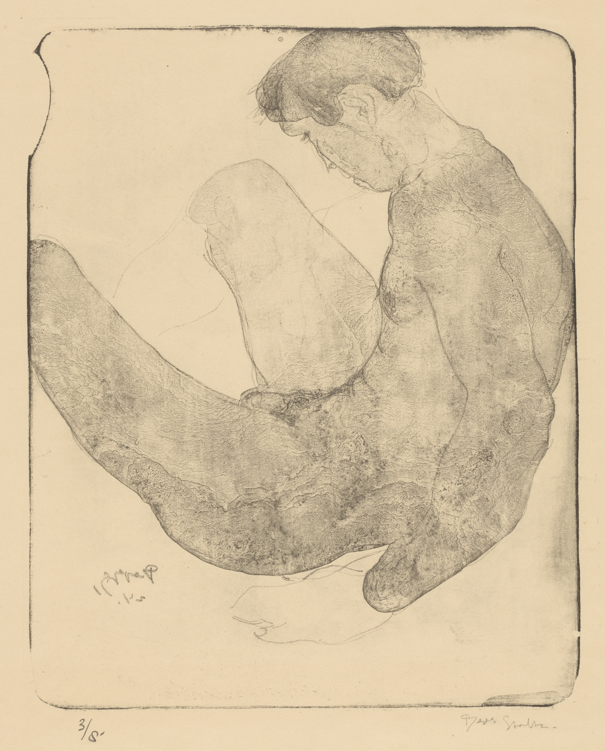 Naakte man met opgetrokken knieën