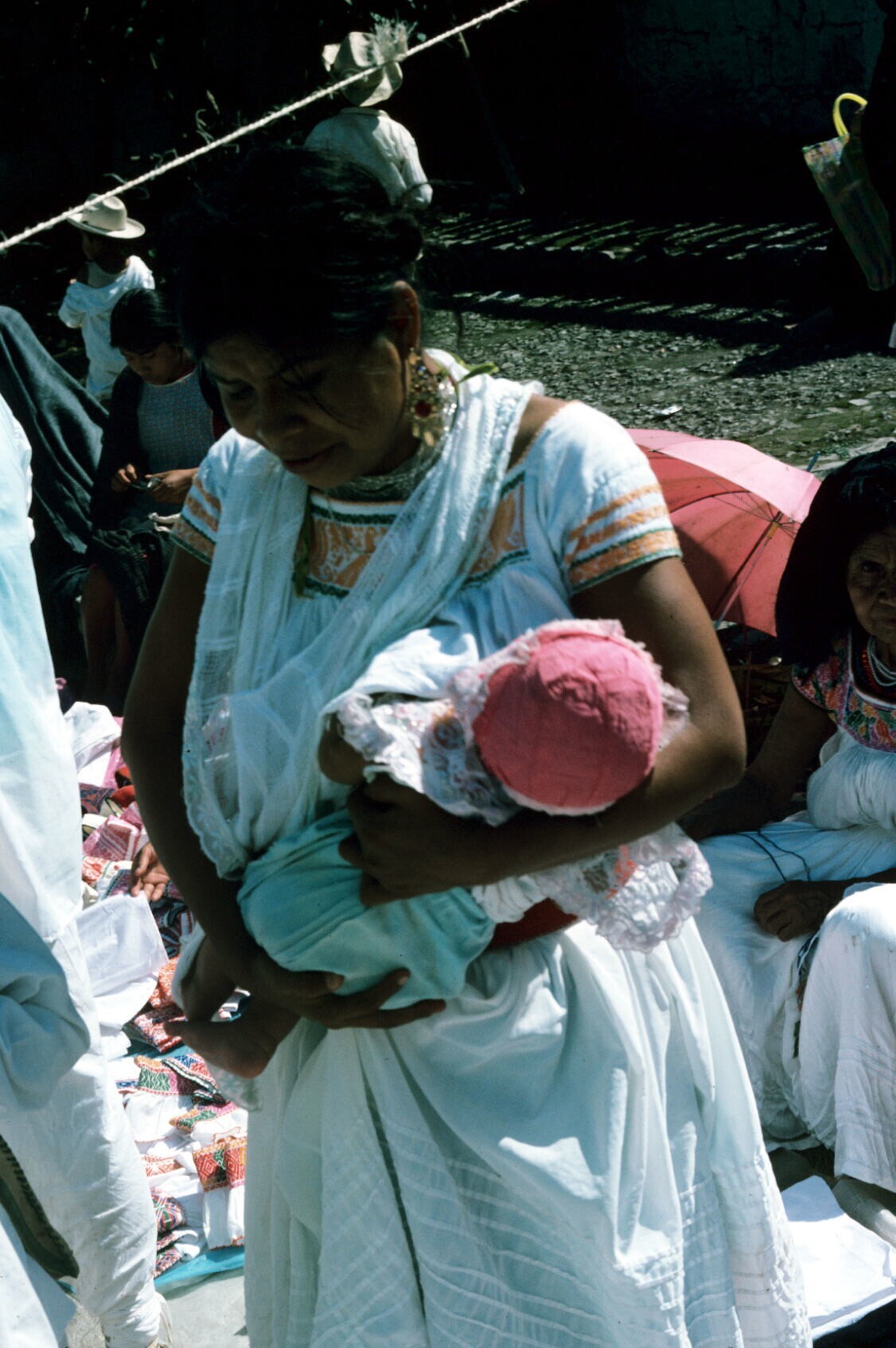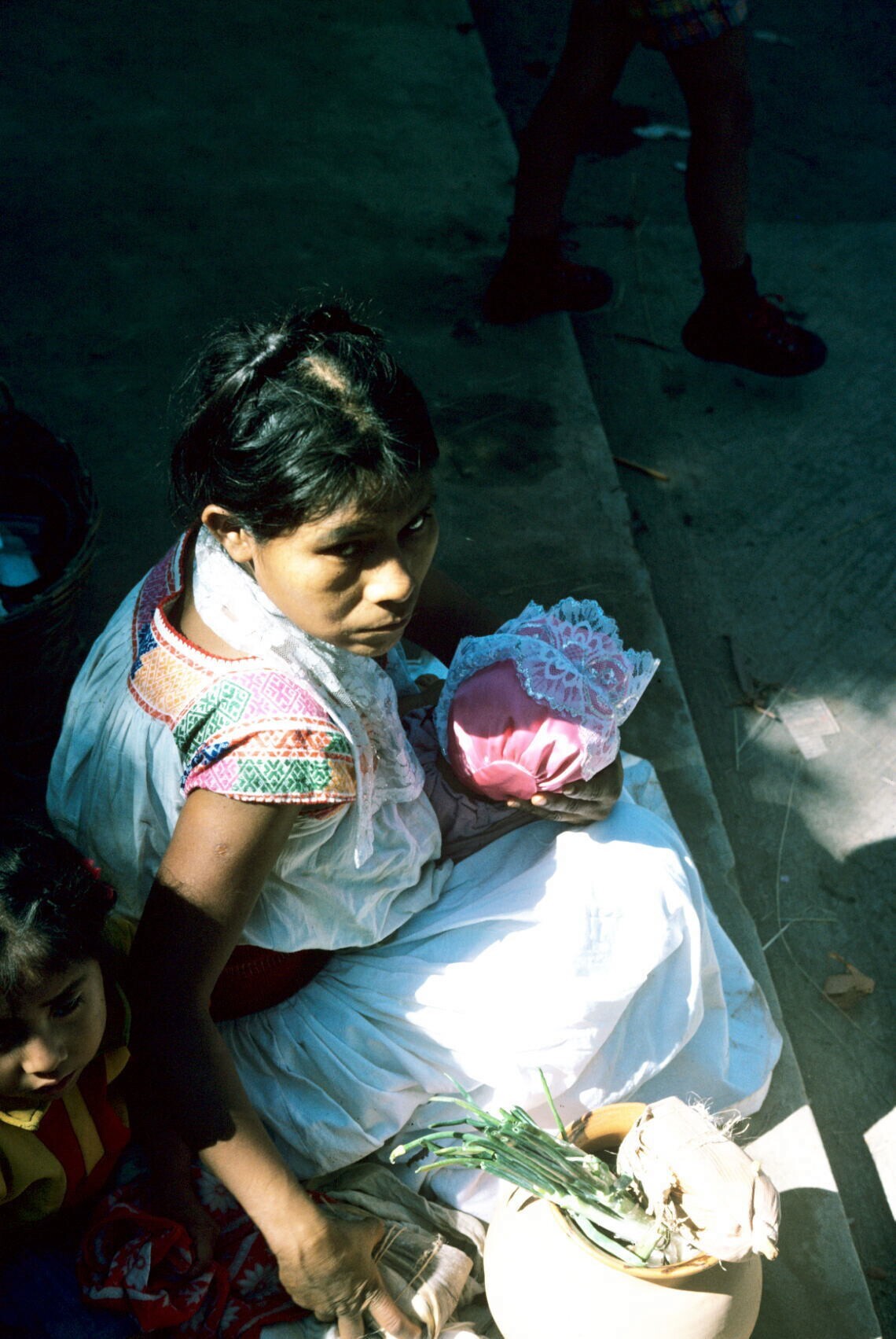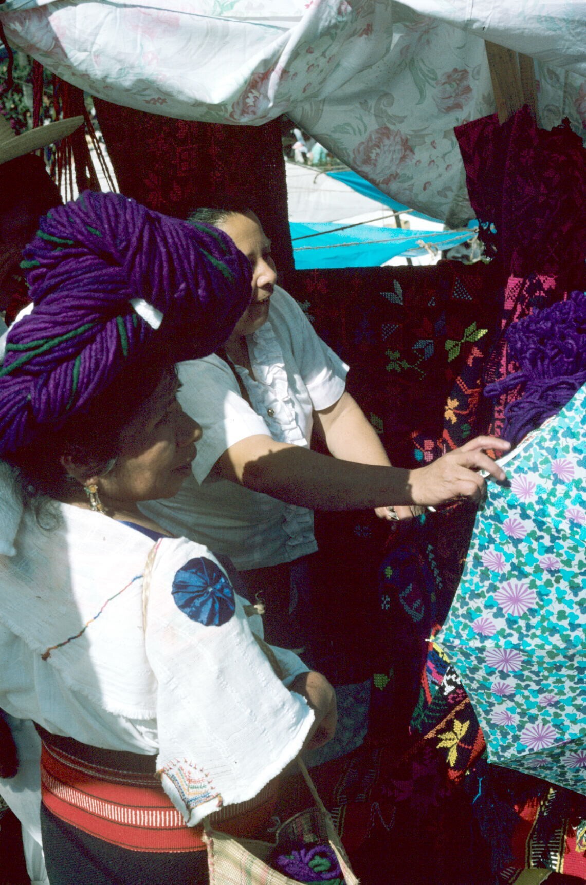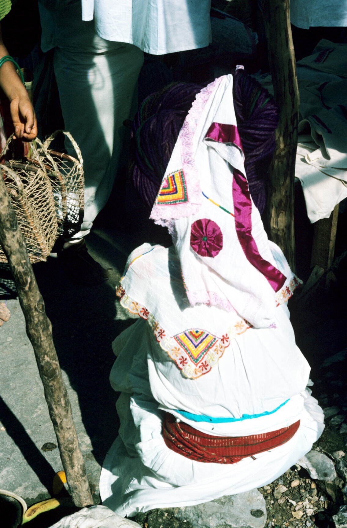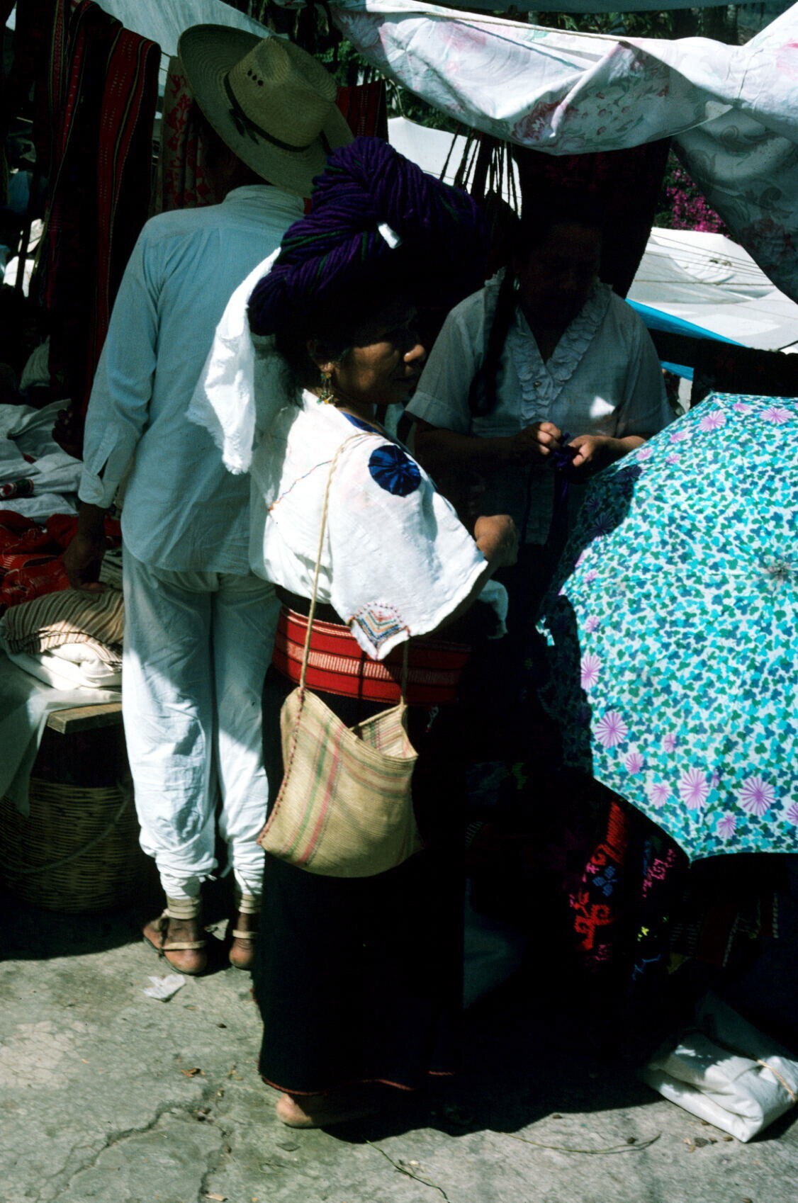 vrouw met maxtahual bij marktkraam