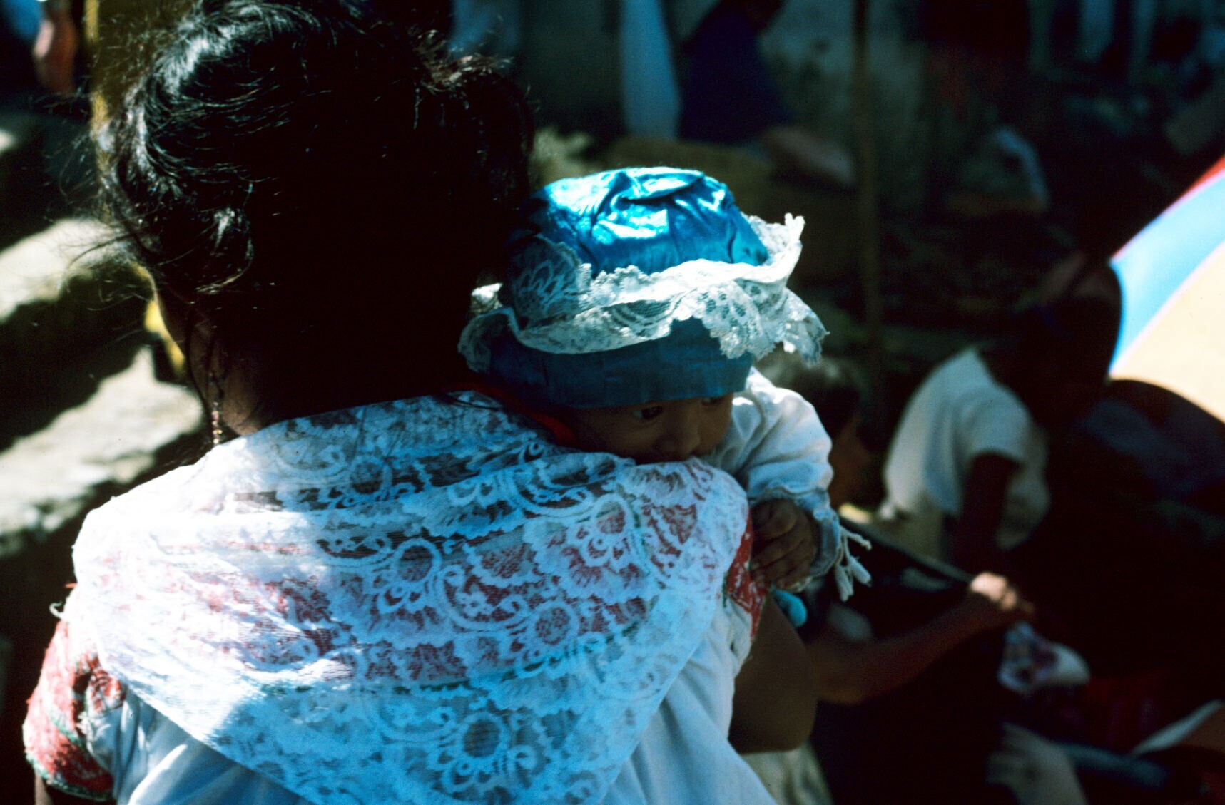vrouw met kindje, op rug gezien