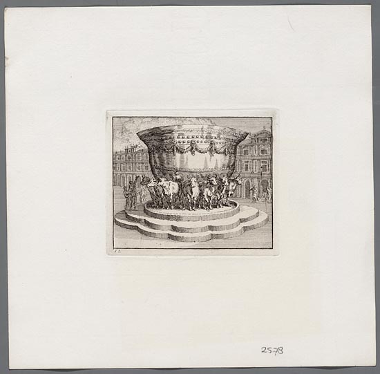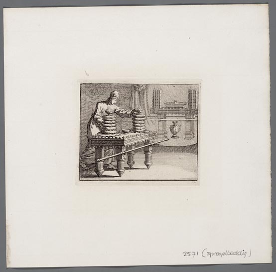 Voorhof van Salomo´s tempel met de koperen zee door ...