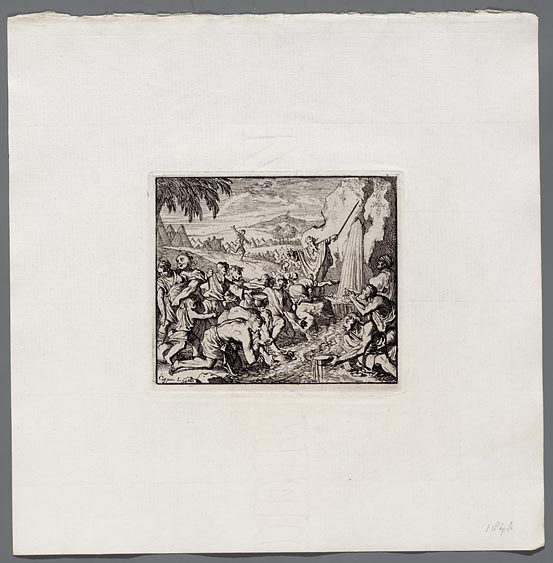 Mozes naast de stenen tafelen spreekt tot de oudsten