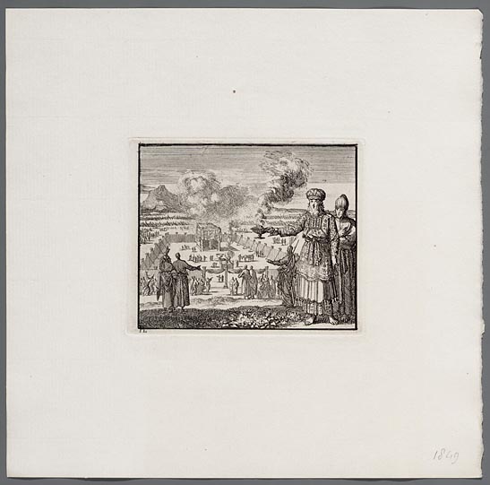 Korach en zijn 250 volgelingen voor het altaar door ...