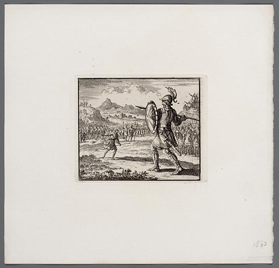 Saul werpt vanaf zijn troon een spies naar de vlucht...