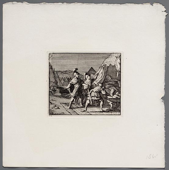 David, vergezeld door Abisai en Achimelech, vindt Sa...