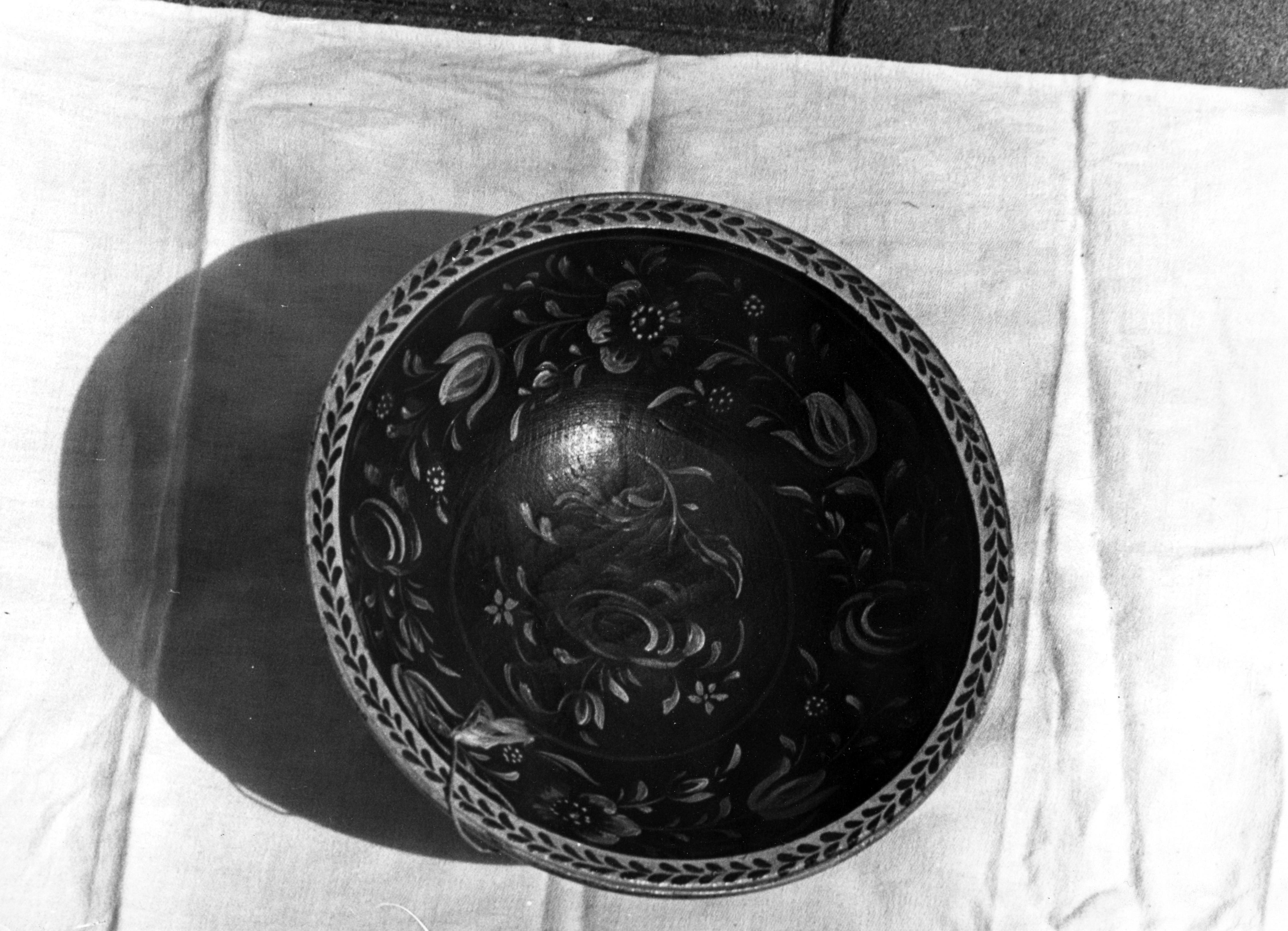 Beschilderd houten napje, Marken, 1943 (zwart-wit foto)